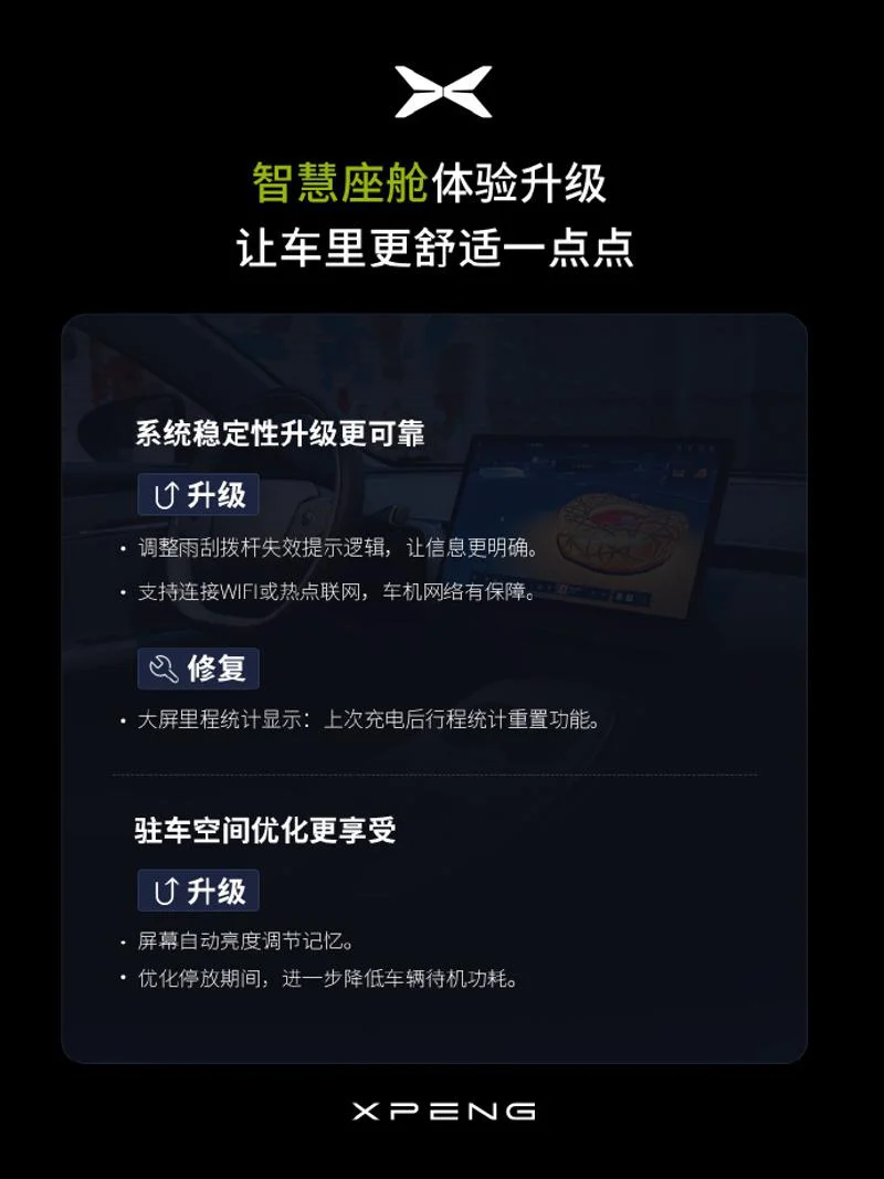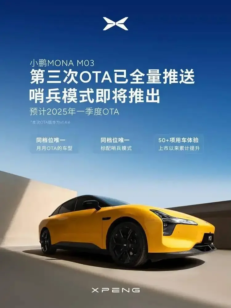 今天,小鹏MONA M03第三次大规模OTA已全量推送,👏👏👏新增通App车控桌面和锁屏小组件、过语言指令来启动泊车等功能,一键控车更便捷。智能座舱体验升级新增喜马拉雅应用,提供丰富的音频内容。方向盘左侧方向按钮可快捷控制空调温度和风量。优化车速和时间信息的显示效果。优化未系安全带告警提醒逻辑。优化自动空调热控制,提升夏季舒适性。智能泊车体验升级APA 自动泊车新增溜坡提醒,保障驾驶安全。地图导航体验升级小鹏汽车 App 支持发送地址至车机,提前规划行程。M ONA3这款车型才出来多久,就已经OTA这么多次,果然理工男的称号不是凭空而来,😄,也祝愿小鹏越来越好,成为电车时代的第一☝️