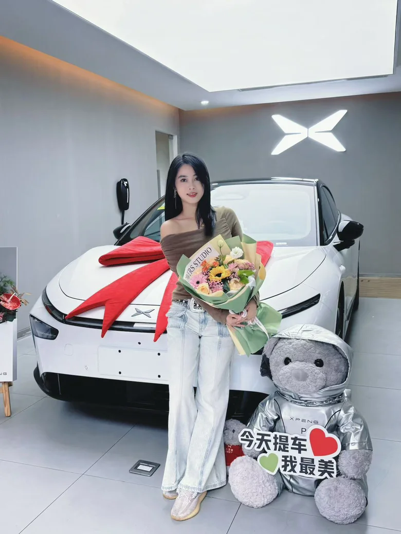 然后在外观的选择上,我们是在星月银和星云白中抉择,最终选择了白色。小鹏的银色很高级,也很有科技感,但是当我们看到白色车漆的时候,第一反应就是这个车好像在发光欸,再搭配上这个悬浮车顶,还得是熊猫🐼配色呀!