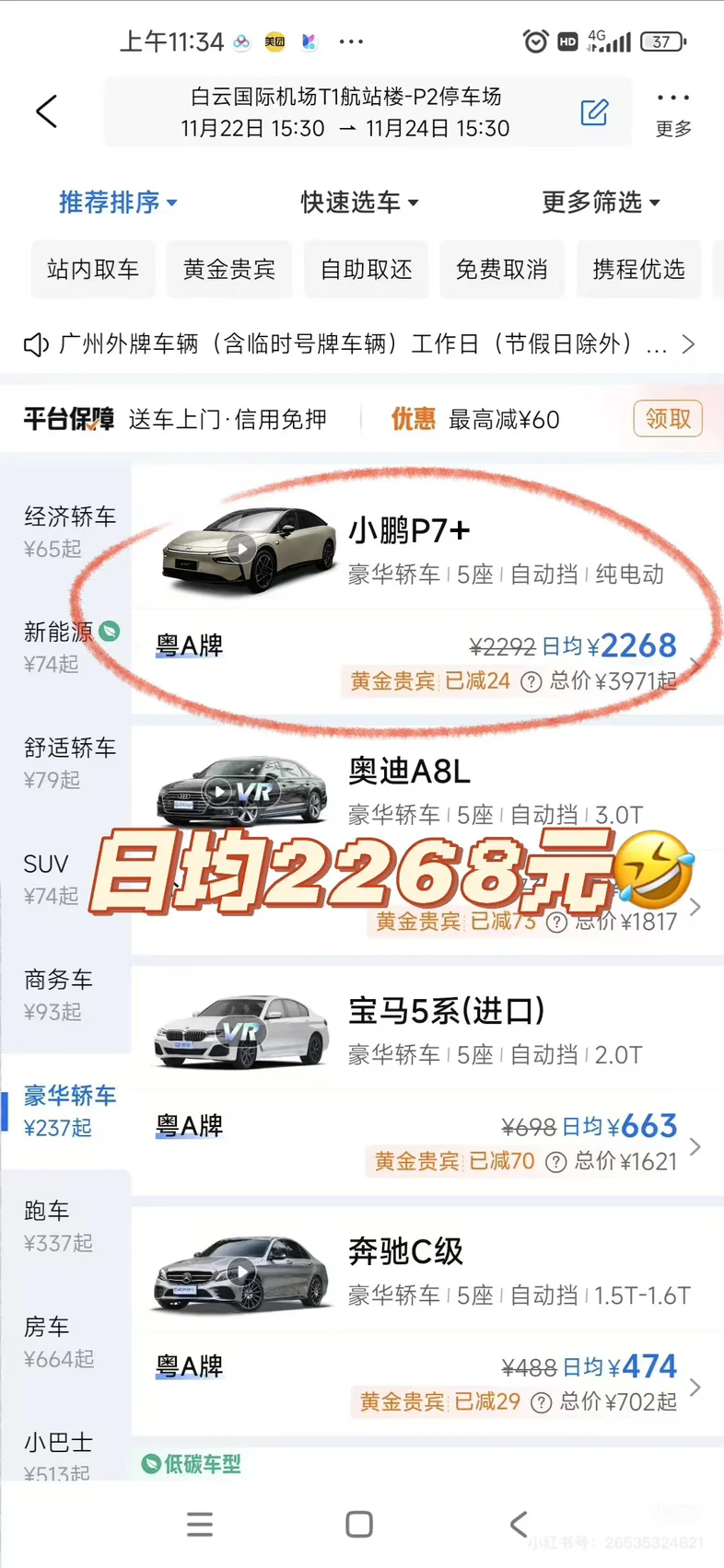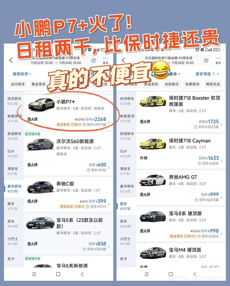 小鹏P7+日租金2000元,超跑才多少?也不到两千啊,这你受的了吗?