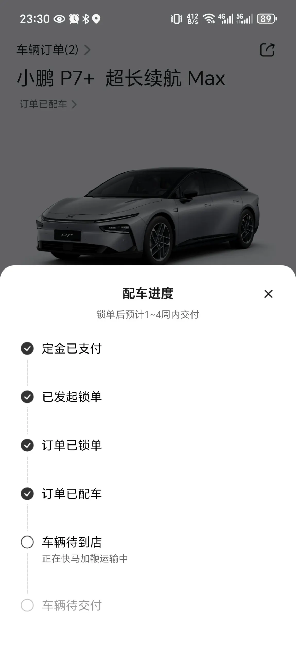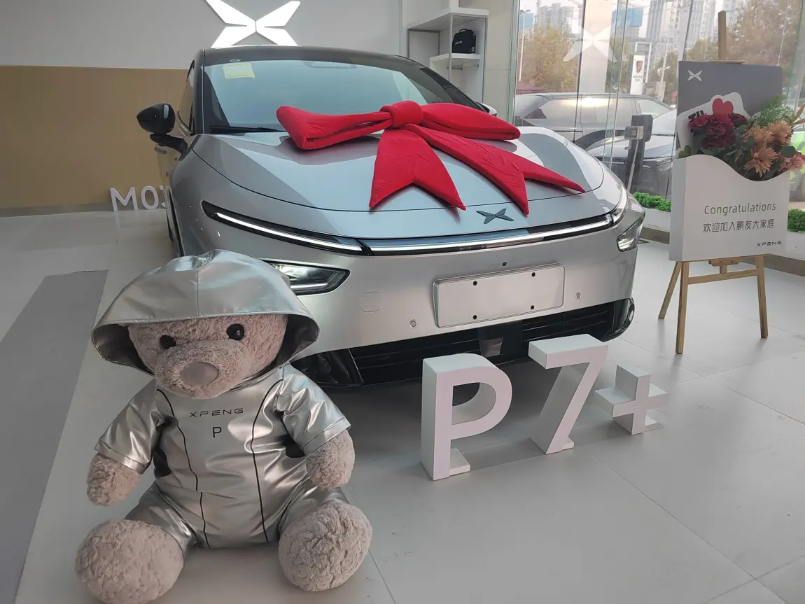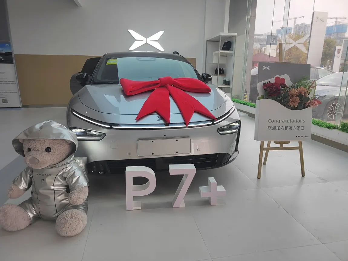 #小鹏P7+首批车主火热提车# 今天提车啦!开心开心开心!!!9月份订的M03,时间太长了,等不了。后来店里看了P7+,很赞!喜欢!不带犹豫的小定,然后再转大定!发布会当天我以为就我自己进不去呢,一直点点点,都快崩溃了。。。不过还好抢到了,最终锁单时间9:46,1-4周。19号配车,22号晚上到,23号一大早就去提车!!!今天一切顺利!提车很赞!!交付的伙伴们配合很好!!祝鹏友们事事顺心!