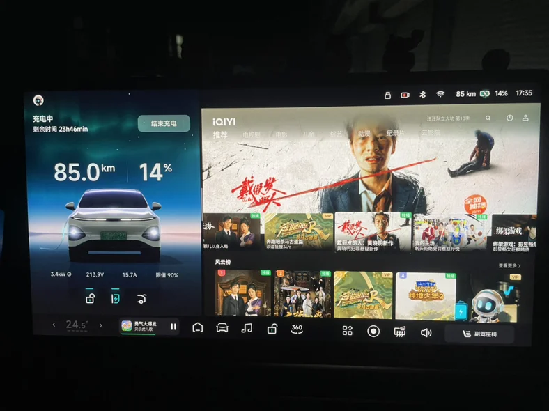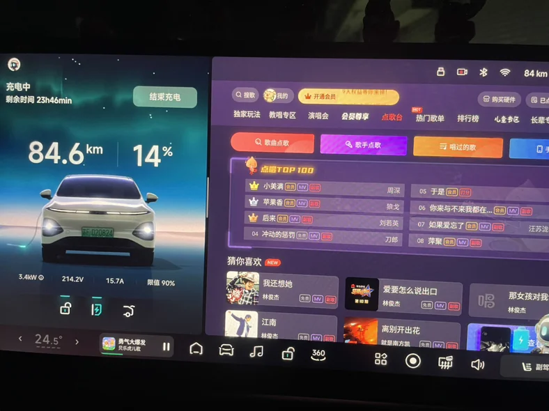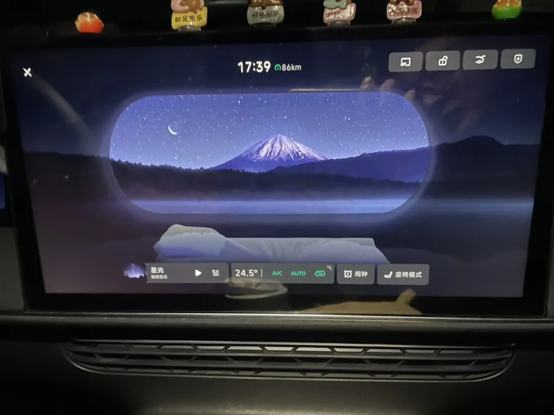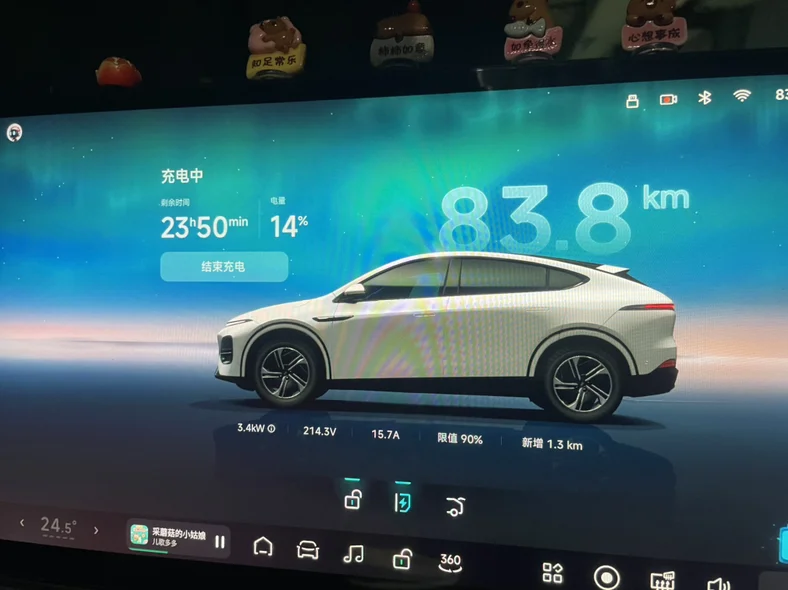 难怪随车充只能作为备用了,经历了一次偏僻地儿就知道了,不过它还是出去玩的必备物,说不准什么时候就可以拿来应急了,虽然功率低了点,但确实是旅行必备物品,这时候可以唱唱歌,或者看看电影,实在不行刷刷抖音或者看个小说,还可以选择休息休息,不过休息的时候记得可以选择把屏幕跟仪表盘都关了,弄个舒适的环境