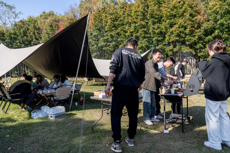 周六的一早当大部队齐聚时,我们一起拍了大合影,然后便早早的开启我们期待已久的美食盛宴,一群小伙伴们坐在一起烤肉,聊天,畅想Mona陪伴的未来。比如每周的自由周边游啊,或者开启长时间的自驾游都很不错。毕竟这么好开的车车就应该多开才不会辜负他,哈哈哈。然后我们述说着各自的驾驶心得。真的对Mona 这款产品都是一致好评,不论是驾驶还是空间或者外观。在这里我们感受到了前所未有的幸福,毕竟遇到一群志同道合的鹏友们真的不容易。真的很感谢小鹏让我们相遇,相聚,相知。