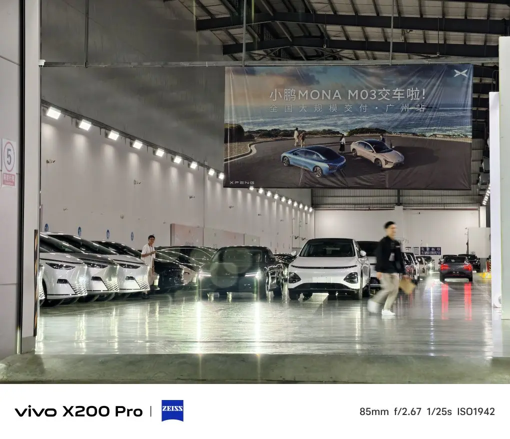 现在的小鹏也是真的好起来了,先后有M03和P7+两大爆款,还有X9这种细分领域的佼佼者,G6/G9也依旧细水长流,颜值担当的P7i鹏翼版也有见到,交付中心每天都是「车满为患」,提车拍照都得排队。你看黄埔这边忙得连M03大规模交付的装饰都还没来得及拆。