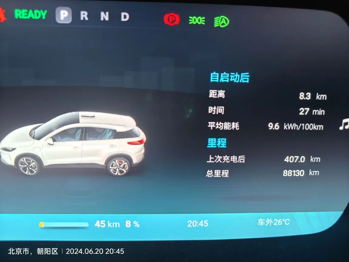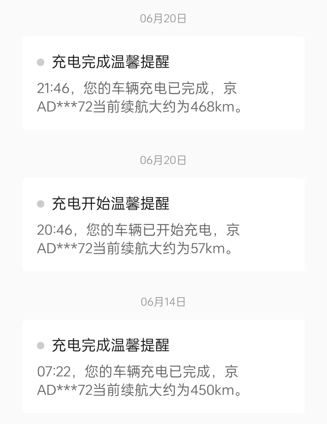 ……这里要解释一下,为啥【充电信息】截图中,“充电开始温馨提醒”写的是“当前续航大约为57km”呢?经过我的细心观察,答案:充电枪插上即开始充电(soc45),充了一会儿后,车机电脑反应出已经开始充电(soc57),此时统计了一下电池电量为57,其实已经充了一会儿了。故有误差……大家也可以留意下、验证下……