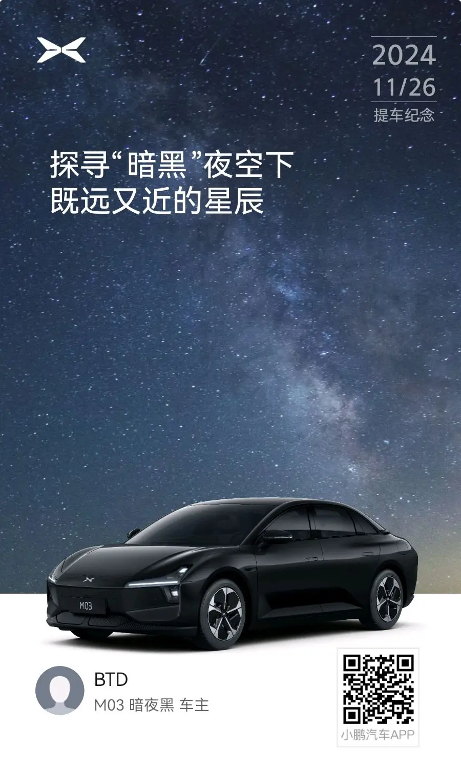 #我的提车作业# 喜提好鹏友好工友😎毕业前就有买辆新能源车的想法,偶尔在网上了解一下电车。一次偶然的机会微信公众号看到小鹏mona03,甚是惊艳。毕业两个月后,去了新单位,离家距离远了,每天来回30km,更加坚定买电车的想法。回头再考虑M03,一个人通勤,A级轿车,轿跑,智驾,10几万,一切都是符合我的预期。我想,这就是我和小鹏M03的缘分吧