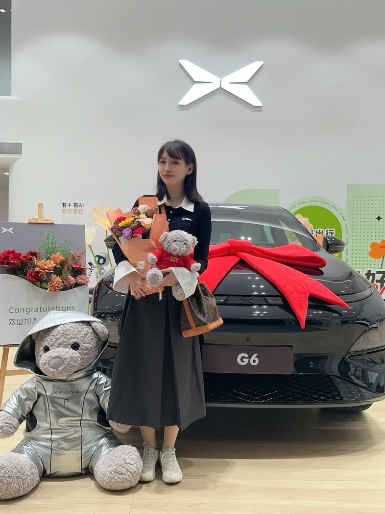 一直想换车很久了,在决定小鹏前也看了其他品牌,可能是缘分使然,前一晚在家里做了小鹏的汽车攻略,了解了mona和g6,正好附近有个小鹏汽车销售中心,就走进去看,第一眼就被G6吸引到!而且还是我心心念念的黑武士版本。英气的外观,还有适合懒人的各种智能功能,尤其是我经常需要开高速的人来说,高速ngp太适合本人了!空间也真的是很够,后排坐着很舒适,我在试驾以后体验了小鹏的智能驾驶还有自动泊车以后马上就心动了!真的是适合女司机!