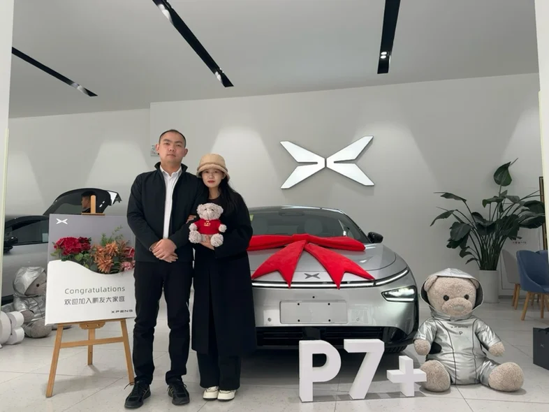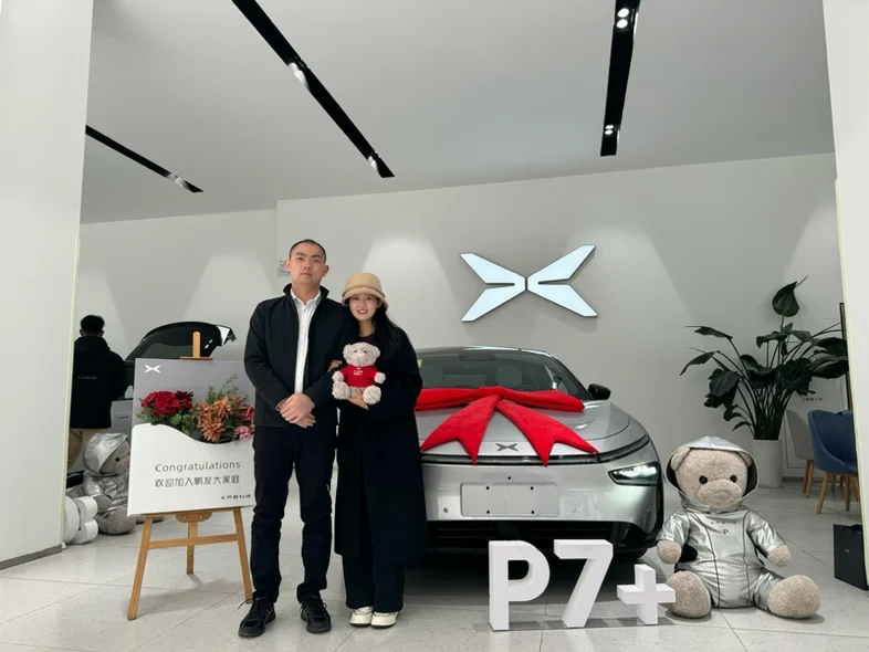 #小鹏P7+首批车主火热提车# 提车啦!!车到店第二天,就和老公坐高铁赶去,整个流程很快,对接经理服务很好,还给我们拍了好看的照片✌✌回来就装上买的饰品和宝宝的安全座椅,女儿也很喜欢新车车呢,感冒不舒服跟她说我们去坐新车车好吗?她就非常开心,这么小就知道喜欢新东西呢😌😌