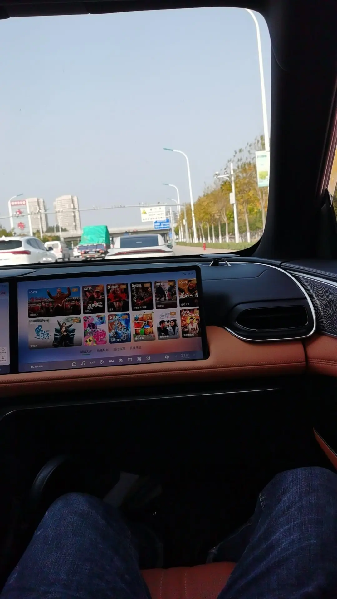 2、豪华:每个人对豪华的定义不一样,G9的内饰设计运动中带了刚刚好的豪华,看上去很规整,能摸到的地方基本都是真皮软感,触感很细腻,双屏幕给我们家人带了很愉快开心的出行体验