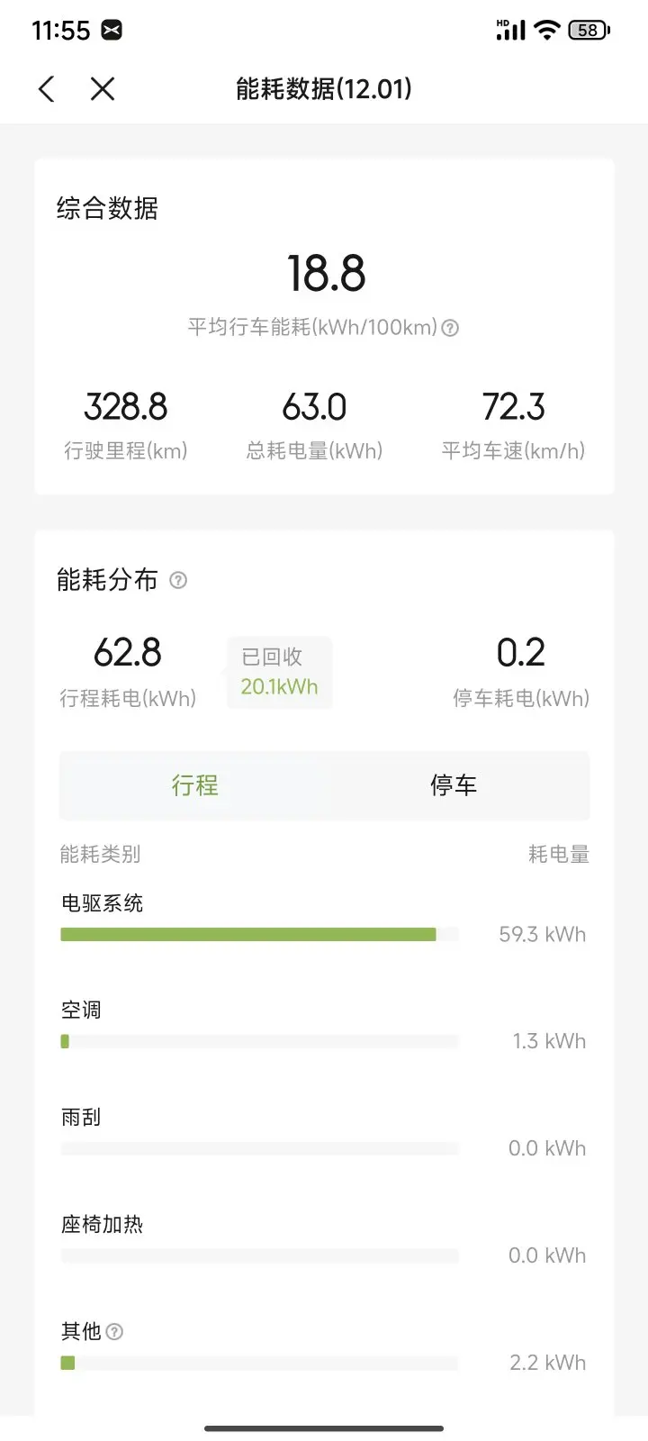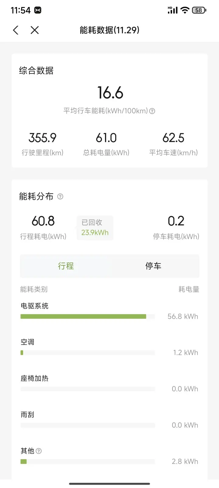 先上能耗图,我们4个成年人,还有满后备箱的行李,高速上基本上是120码,有时候甚至130码,气温是10度左右,地图显示路程300km,电表实际掉电288km,wltp居然反向虚标,续航扎实的没话说。