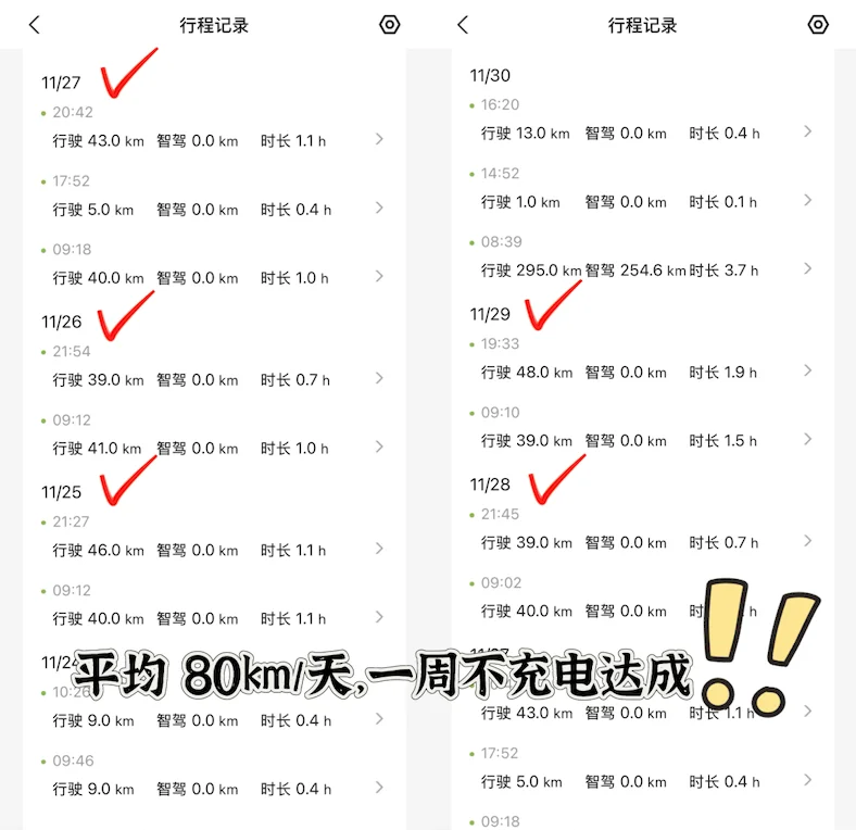 OK! 至此 充电一次挑战一周通勤完美结束🎉🎉,成功拿下!咱们总结一下👏