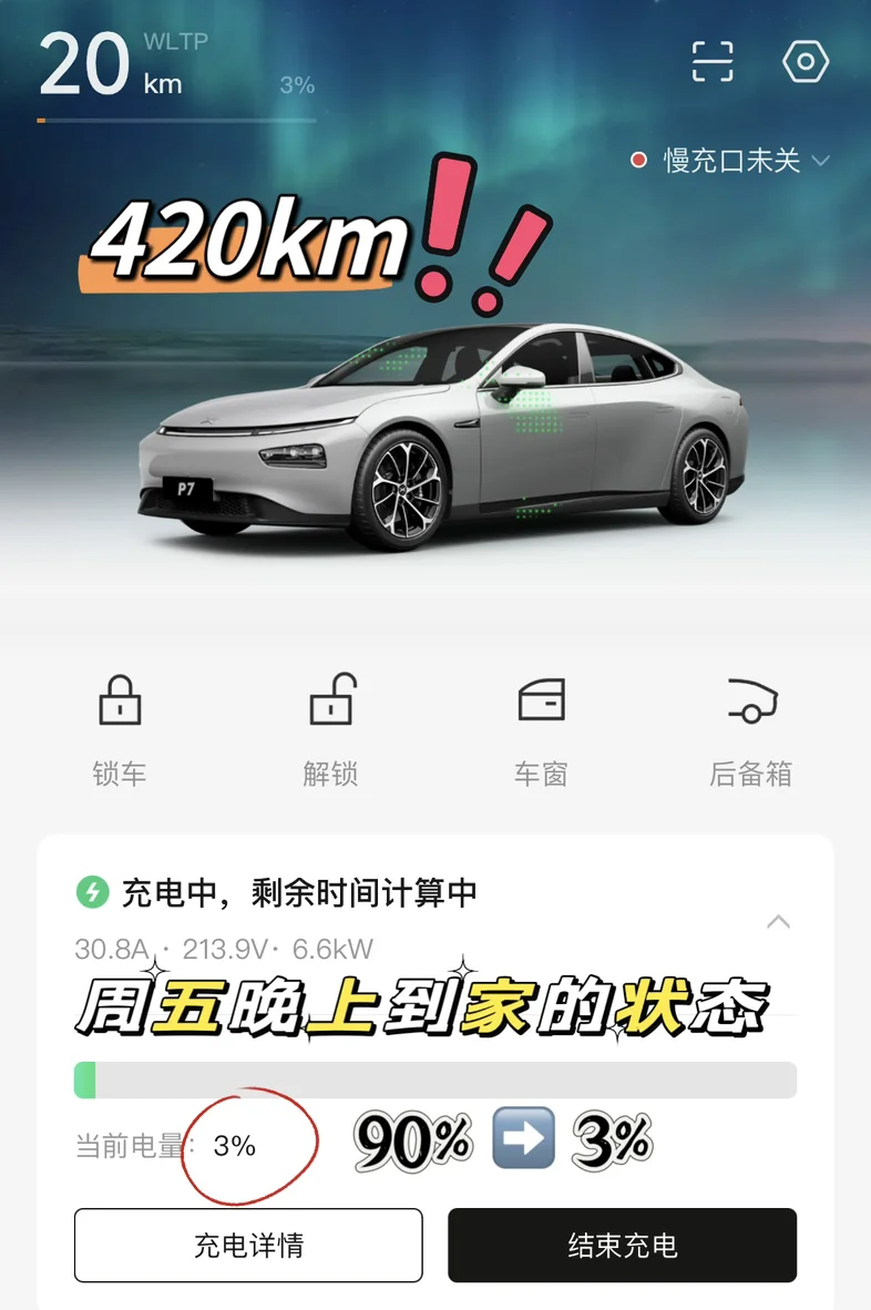 写这篇文章的初衷,一是想表达小鹏的能耗控制确实行业TOP级🔝,通过脚法控制加持更能炉火纯青;二是小鹏实现OTA升级续航这件事给了我启发。综上,P7除了颜值是王者外,内在的能耗管理水平依然杠杆的,自己列了一个挑战计划,用一周时间在初冬之季挑战测试 P7 的续航能力,中间也记录下了点点滴滴,给大家分享分享☺️