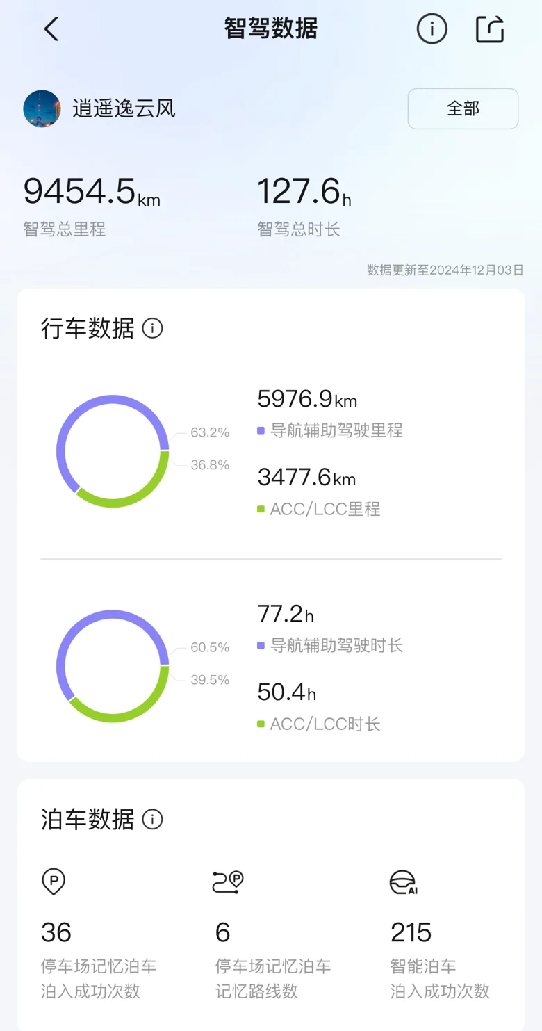 一年零四个月左右的深度驾驶,从陌生到熟悉,拥有胖虎以后的生活仿佛开启了新世界的大门!一年零四个多月的陪伴,总里程早已超过3.6万公里,其中智驾总里程更是接近9500公里!而且有了鹏厂强大的智驾能力加持,我的胖虎能轻松把我和我的家人载到任何地方,去感受智驾出现的快乐与美好!