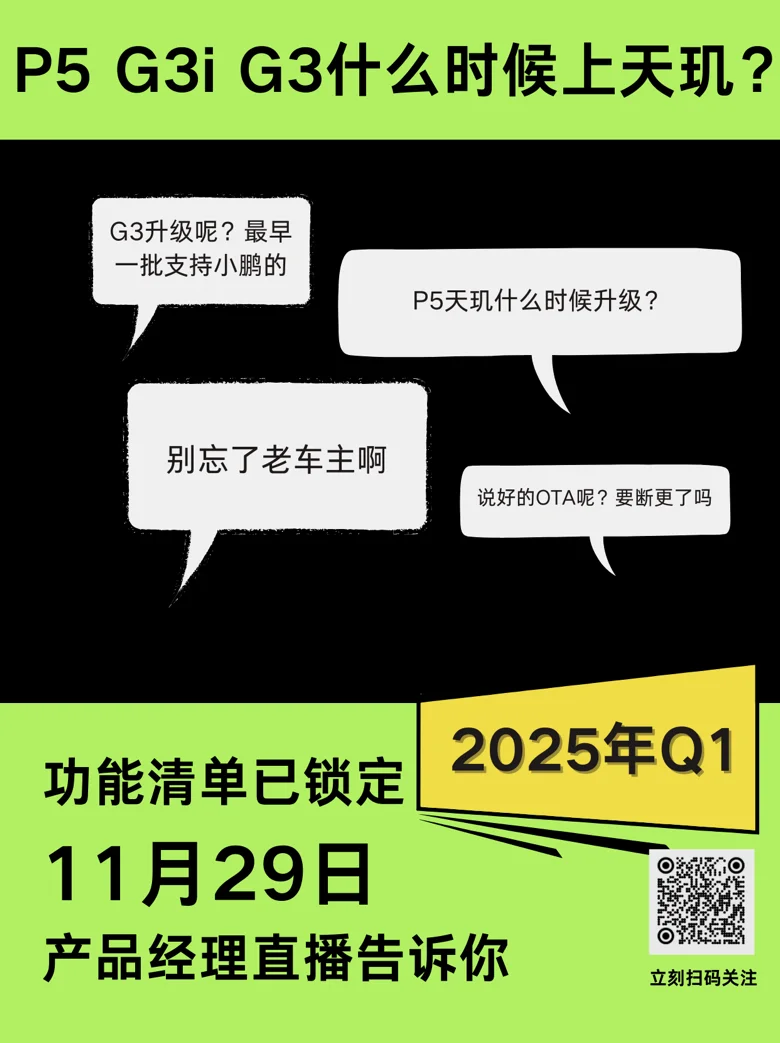 更有甚者,对于胖虎的智驾,虽然暂时没能更新至最新天玑车机系统,但是在上个月11月月底值班经理值班周直播中就给出了最新消息,老P5车主也始终没有被放弃的说法!而且预计25年第一季度就会上车!就好像巨大的惊喜在等着我!真的很期待!@OTA小助手
