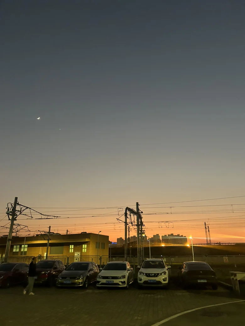 充满期待的一天,在结束了忙碌的工作后,下班前随手拍下见到的美景!因为有爱的日子,人间值得!所见即所得,一轮明月有星辰为伴,在夜幕降临前,记录下这一美好风景!