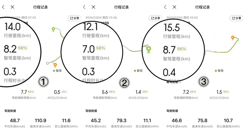 这一天的行程里,我的胖虎行程占比中,智驾里程远超一半!
