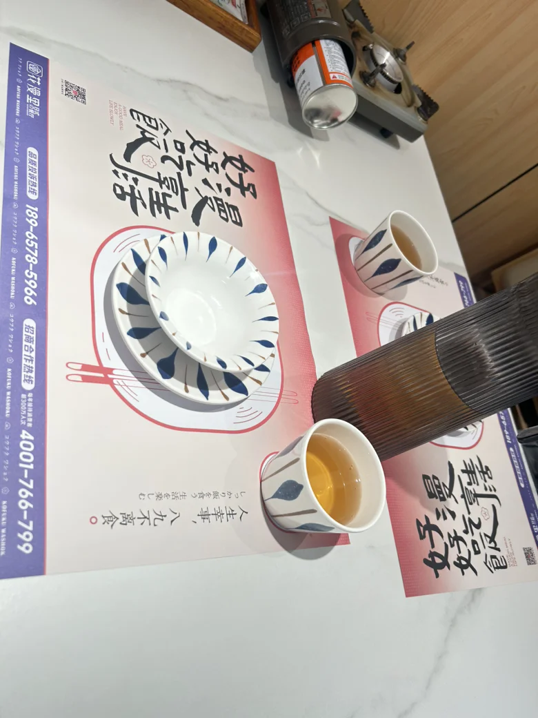 很喜欢小店碗筷下压着的宣传纸,上面写着“好好吃饭,漫享生活”!还有一句:“人生幸事,八九不离十”,有爱人在侧,为爱庆生,温馨与浪漫也是如此简单!因为“一屋、两人、三餐、四季”,所以用心就会发现,其实幸福都藏在了生活点滴里…