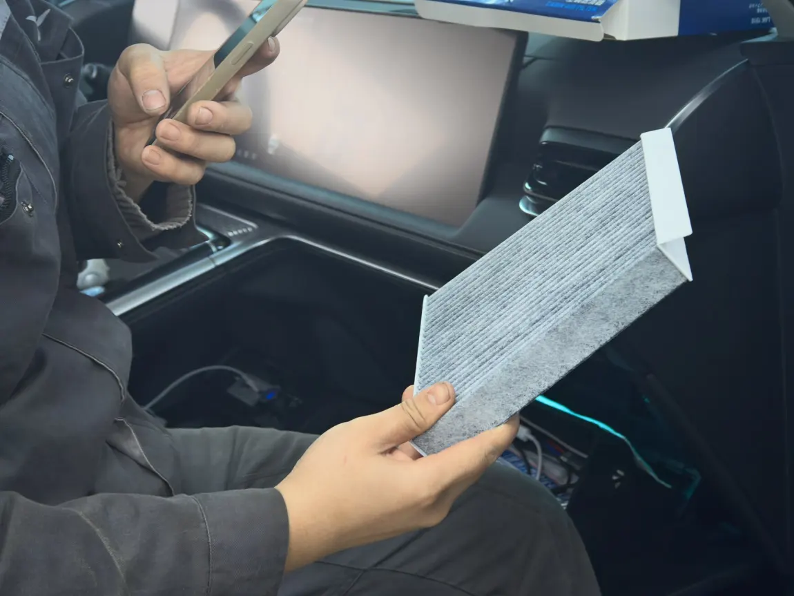 在保养尾声,小哥利索地取出旧空调滤芯,展示给我看那堆积的灰尘污垢,随后换上崭新滤芯。“这下开空调,车里空气就清新多了。” 小哥笑着说。我知道,这一小小的举动,关乎的是往后车内驾乘环境的舒适度,这份贴心关怀,实实在在暖到心里。