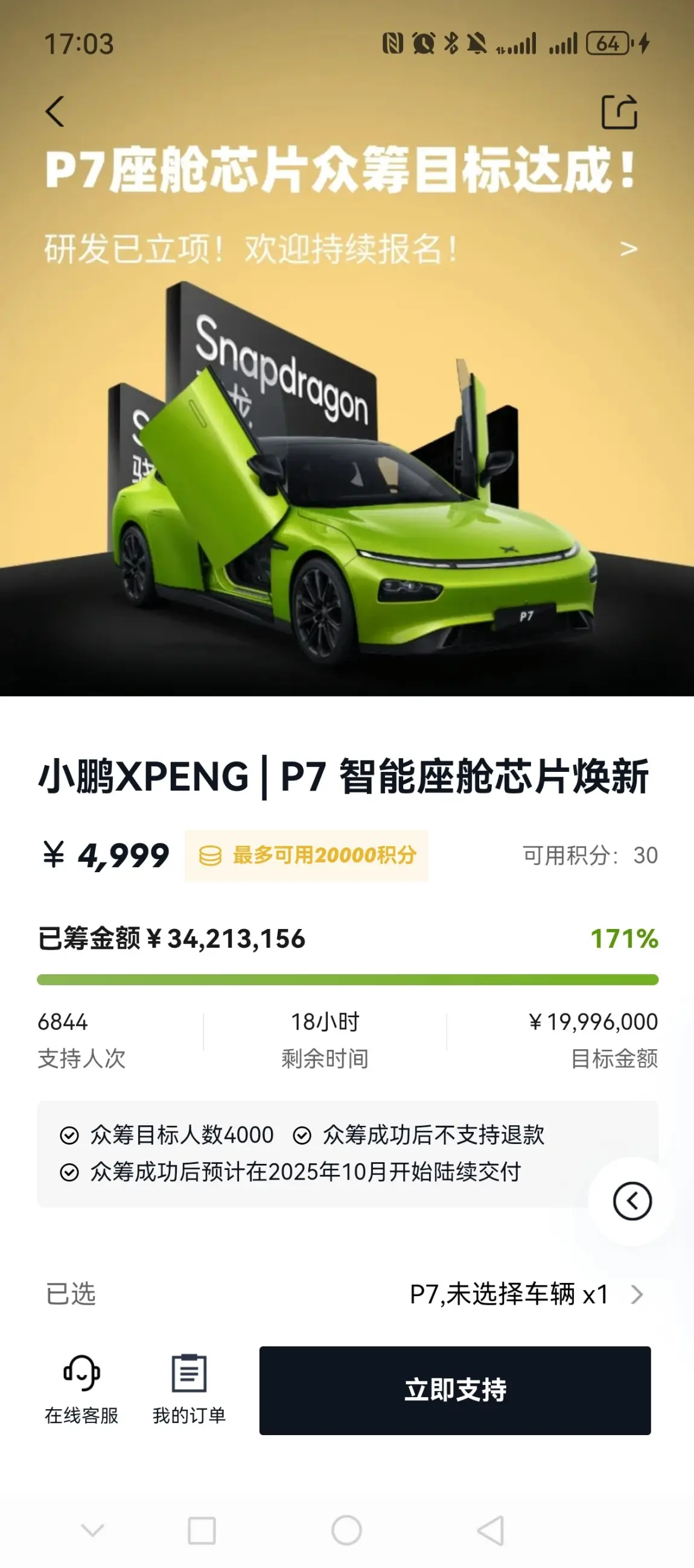 我参加了升级芯片的活动,感觉人气也很旺。赶早买p7的这帮人,真的值得好好守护。那时候新能源还不流行呢,这帮人就是科技粉敢尝试,有一点点经济实力。哈哈,所以这次加钱升级芯片,肯定都会玩的。希望小鹏能好好爱护这帮车友,用心做好企业哦