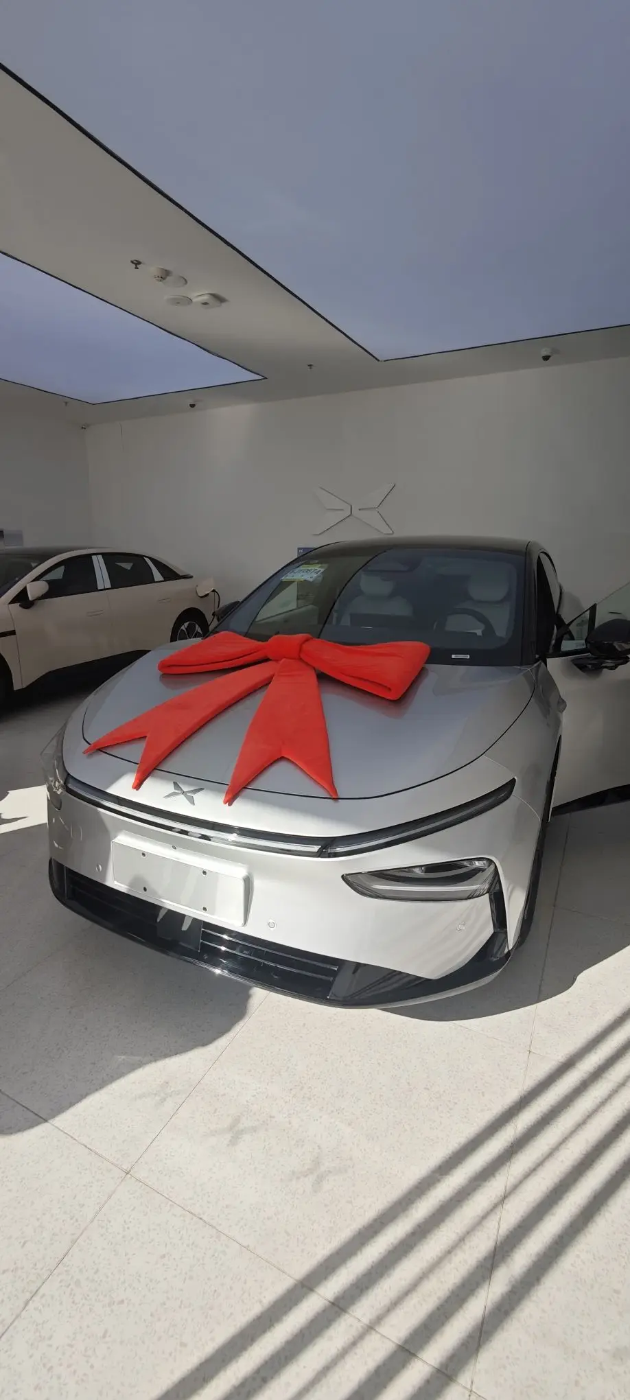 一大早就来到了小鹏交付中心。一进门,我的目光就被那辆帅气的小鹏 P7+ 牢牢吸引。它静静地停在那里,流畅的车身线条仿佛是一位优雅的舞者,在灯光下熠熠生辉。从前脸望去,独特的封闭式格栅搭配犀利的大灯组,给人一种未来感十足的视觉冲击。让我仿佛置身于科幻电影中。