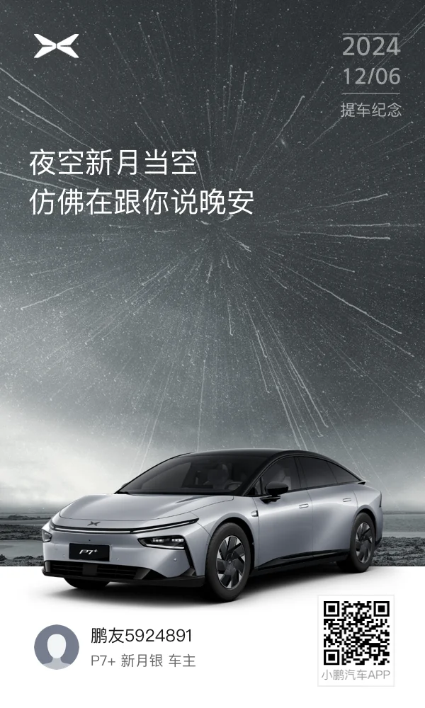 12月6号,值得纪念的好日子🥰感谢爸妈全款提车车啦12月1号上午收到的配车消息,激动的立马群里联系了销售和交付人员,说是3到5天差不多就可以到店提车,过了周三我就心急的询问车有没有到店,又过了一天终于通知我周五可以提车了,立马请了半天假,周五带着资料和爸妈一起去提车啦🥳真是太帅了,各个角度都好看!再顺带一提小鹏的车辆置换也很不错,价格合理比之前我在瓜某子上评估的还要高一些,效率也很高,4号评估完,5号出价格办手续打钱,6号我提新车时旧车就直接交接走了,一气呵成,非常节省时间。附上最新的能耗图,只能说太牛了🫡🫡🫡