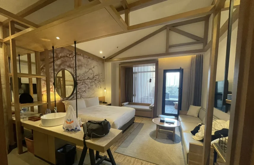👉我们选择了🏡别墅区的住宿,环境更是没得说,房间宽敞明亮,设施齐全,窗外的风景也很漂亮,放下行李后,换上浴袍前往洗浴区😏😏😏