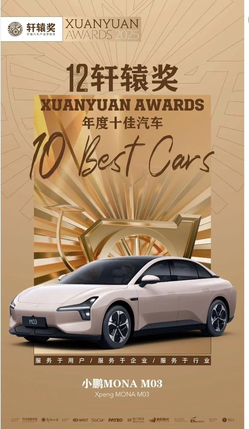 小鹏MONA M03荣获第十二届轩辕奖中国年度汽车大奖,恭喜小鹏了诶,这车也不错