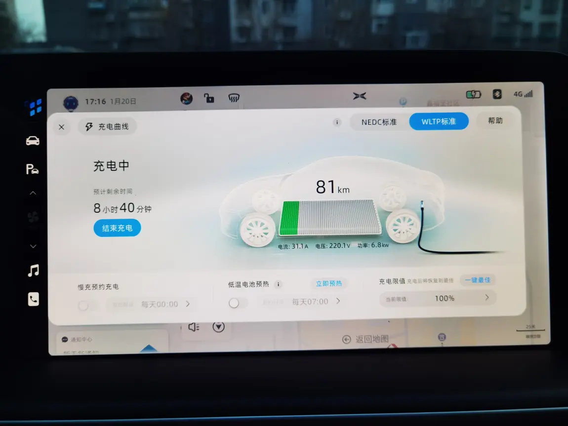 安装完成的当天,正好该补能,就直接插上慢充,给小P吃顿饱饭~