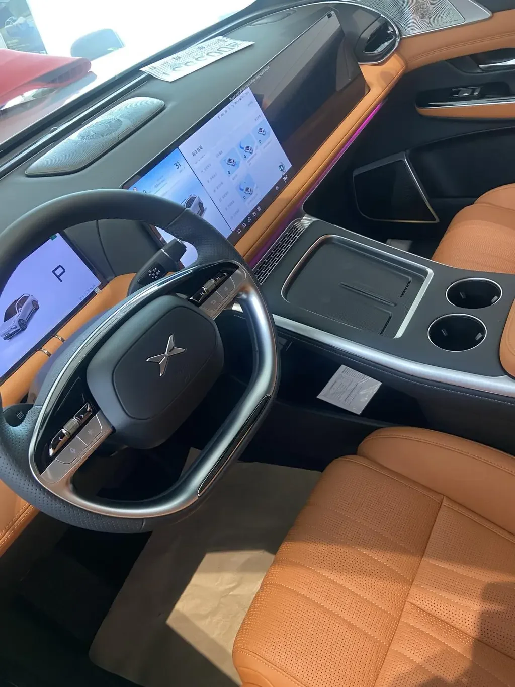 #我的提车作业# 小鹏G9最近是用g6置换换的,然后相比g6而言,高速更稳当,悬架舒适有韧性,整个车身大气上档次,那个轮毂是低风阻轮毂,我觉得挺好看的,虽然有些车主不喜欢还要单独换轮毂,我喜欢这个轮毂,我称它为“战斧”轮毂。g9内饰空间定的是棕色的,类似保时捷棕,亲戚保时捷内饰就是这个棕色,整个内饰也是高大上档次,非常喜欢。而且耐脏。后备箱也挺大的,还有一个前备箱也是个惊喜,真的是非常非常的好,停到停车位,比旁边的车(宝马,奥迪)都要大气,上档次。祝福小鹏越来越好。销量再创新高。