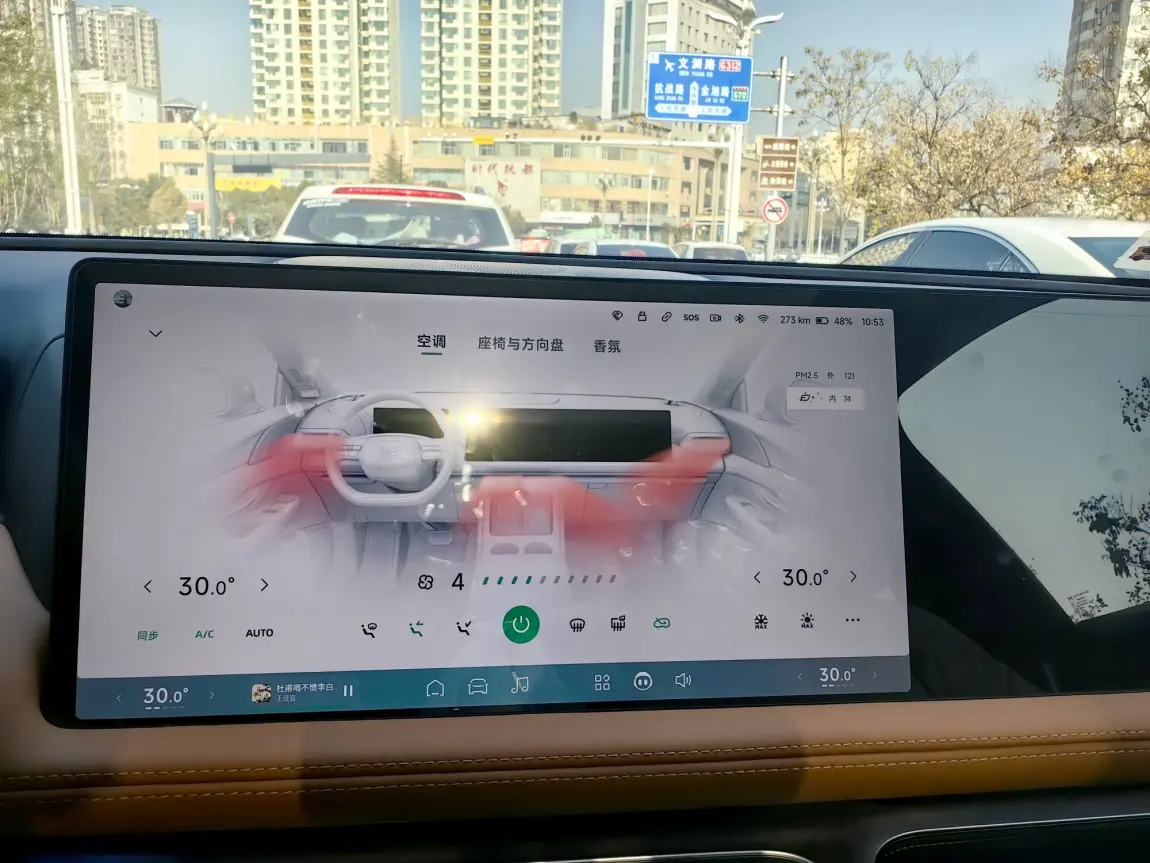因为是驾驶比较暴力,这样的能耗我很满意,西安的冬天,虽然没有东北那么冷,平均气温也在1℃附近,因此空调AC制热也是一路常开,保持在温度30度,风量4档。