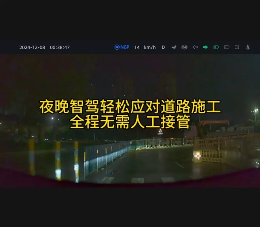 小鹏XNGP夜晚智驾,轻松应对道路施工,多次绕行避让