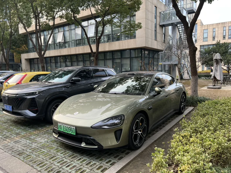 白天在追觅园区看到一辆小米SU7橄榄绿,晚上就见到了我的P7橄榄绿,颜色还原度贼高,晚上光线不强,但也能看得出帅气了不少,明天白天再拍几张靓照,嘻嘻开心