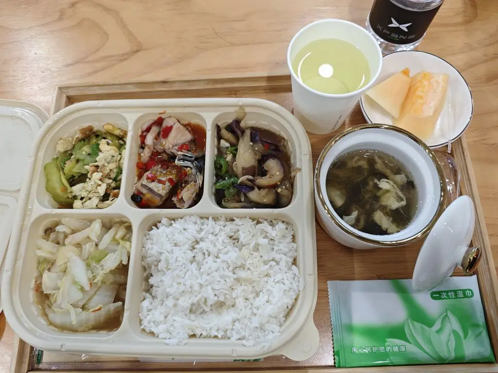 然后就是办理时间,由于我拖拖拉拉的原因拖到了中午,小哥哥十一点就在跟我们确认是否在小鹏吃午餐,我们想着试试看的想法报了餐,味道还行,主要是量大哈哈。休息室人挺多,目测大部分是做售后的,但大家很安静的坐着等待,素质很好氛围很帮。