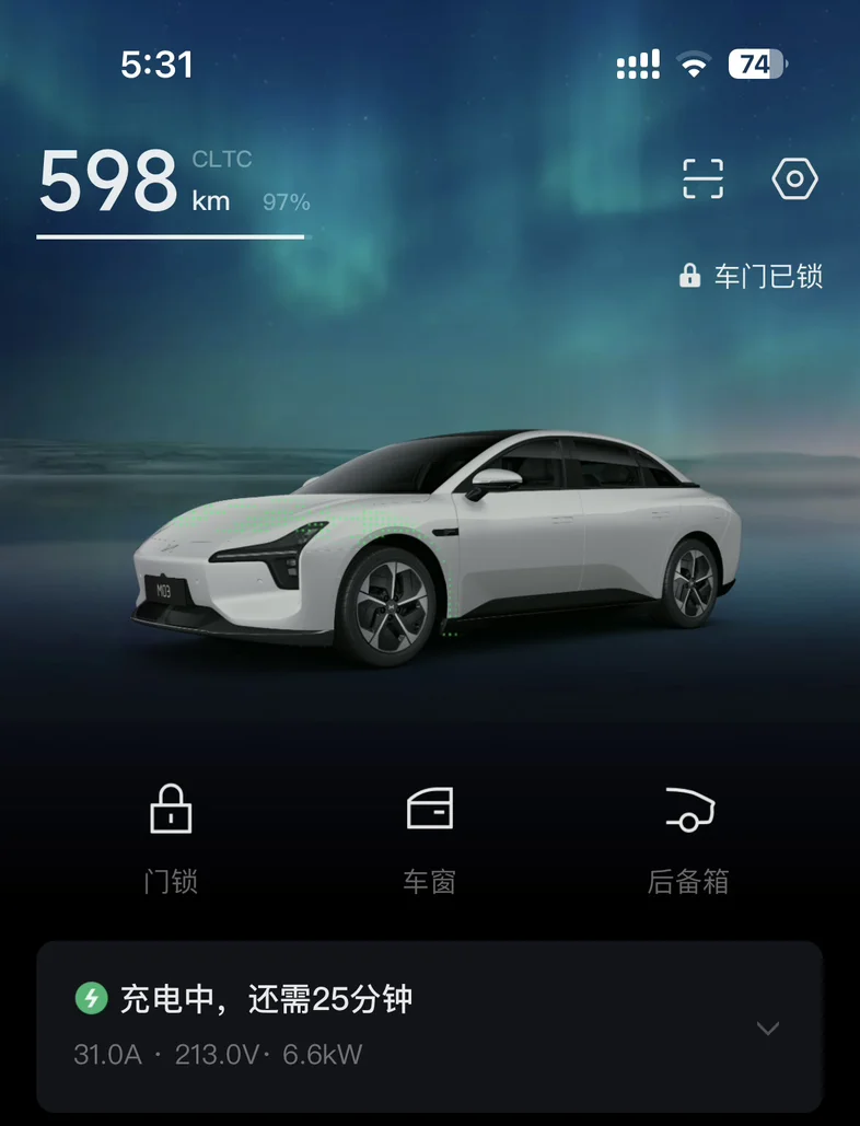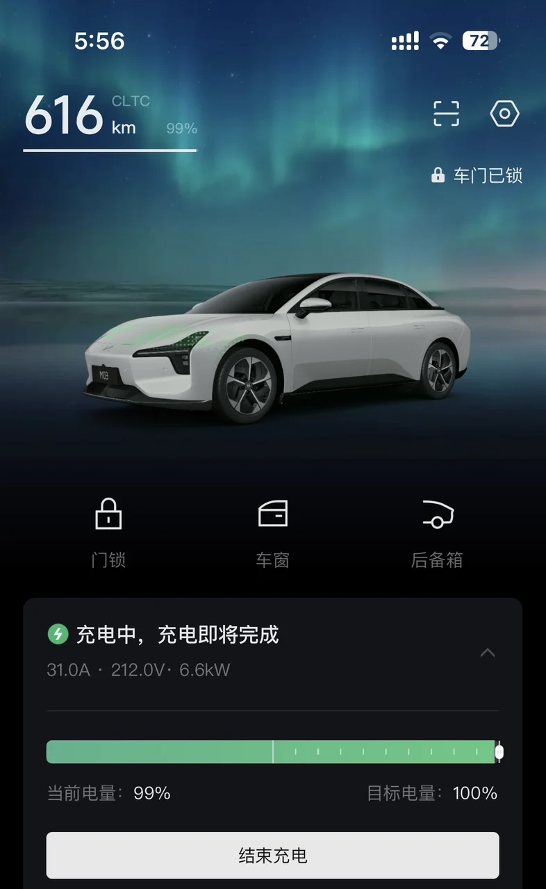 充电时间长了一点,不过还好,这个时间点卡的正好,早6:30要用车(充电时,车电余量28%)