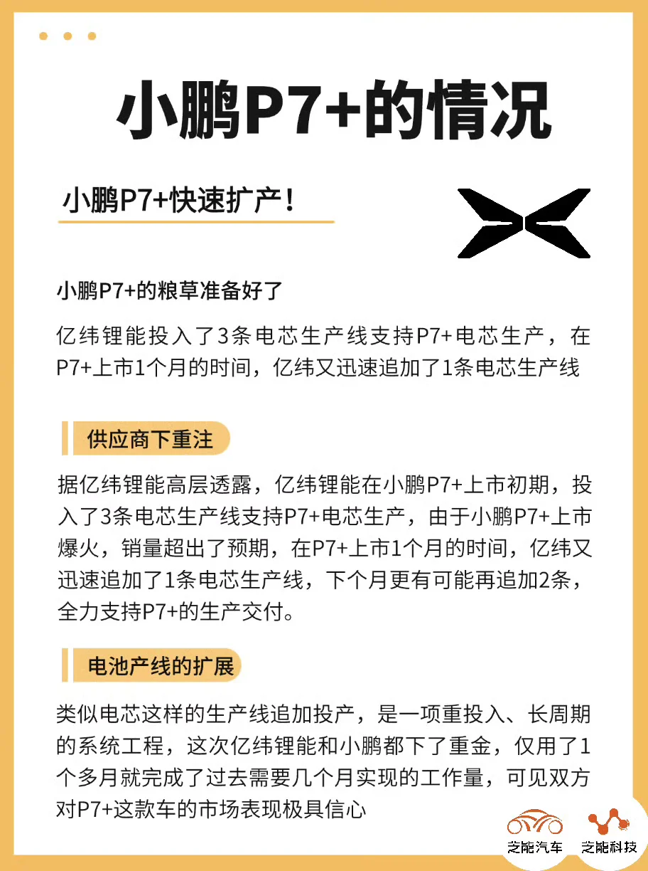 小鹏P7+向供应商反向注资1亿元,扩大电芯产能,交付周期已经缩短到5-8周了,好车不用等,年前就能开上小车车回家,这才是让消费者爽到底啊