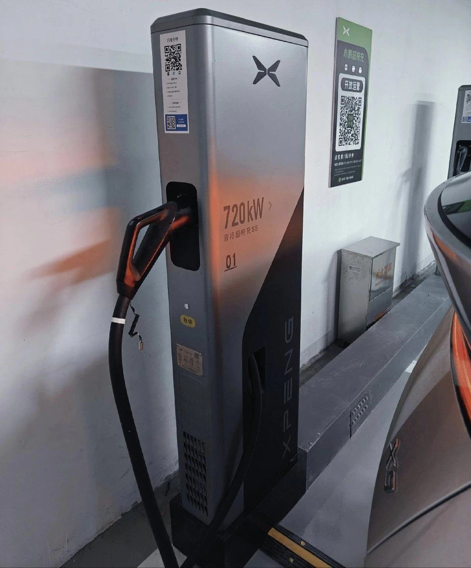 小鹏S5超充站的操作非常便捷, 插上充电枪后,车辆可以自动开始充电, 而且充电枪很轻, 单手就能轻松操作