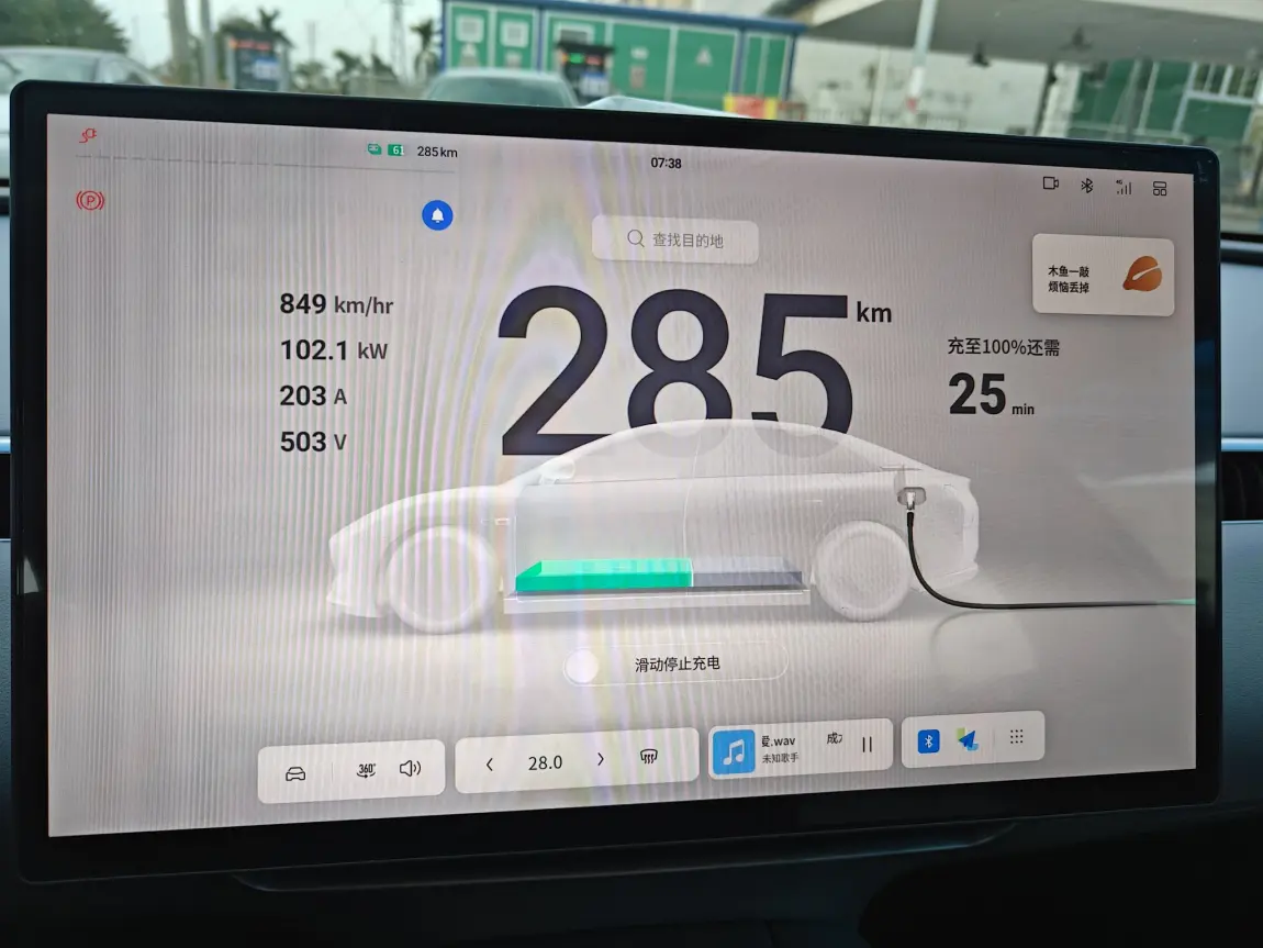 小鹏m03正如销售所说500v平台,小县城第三方充电站驴充充最高功率103kw/503v功率可以稳定充到64%电量,在十万左右纯电新能源轿车中,还是比较不错的。