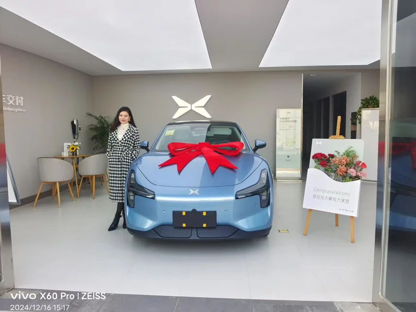 #我的提车作业# 10月12日下单购车,12月16日就提了车,比预计的早了半个月,为小鹏的速度与激情点赞👍。拿到车的那一刻心情是激动的,快奔四的老阿姨提了人生中的第一辆车🚗,并且还是小鹏,大家平日里也喊我小彭,这或许就是缘份,就和人一样,相遇都是上天安排的,所以说我和小鹏也是一见钟情💘。希望他在我未来的路上给我带来luck,一路相随。再来说下外观,选的是正务蓝,我最喜欢的颜色,让人感觉很清爽干净,不仅仅是外在美,车子的功能也很齐全,尤其是像我们这种新手女司机最合适不过,旁边有障碍物他会温馨提醒,音响及灯光,空调效果都是杠杠的,最中意的就是中间的显示屏,很智能,还有自动泊车,智能驾驶功能。这样的价格购买这样的车车,的确很香。