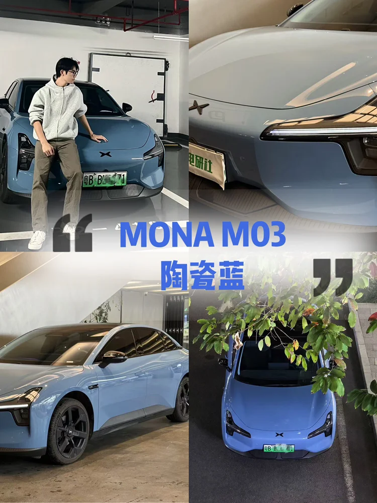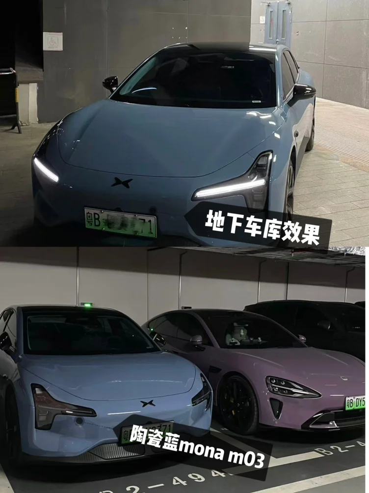 昨天在自营站充电的时候,被人敲车窗了😱原来是mona车友被我的新车衣吸引了! 原车是黑武士,非常上镜,为啥还要改?原因很简单,黑车实在是太容易脏了不可否认黑武士很帅!但是黑色漆面很容易着灰,基本得三天一洗车 刷了很久的改色攻略,mona的改色案例实在是太多了,最后选了tpu材质的瓷器蓝,这个色调不会很街车,加上tpu材质带来的高级感,最终效果非常不错!对比原车黑武士,你们怎么看👀#小鹏MONA M03改色集结号#