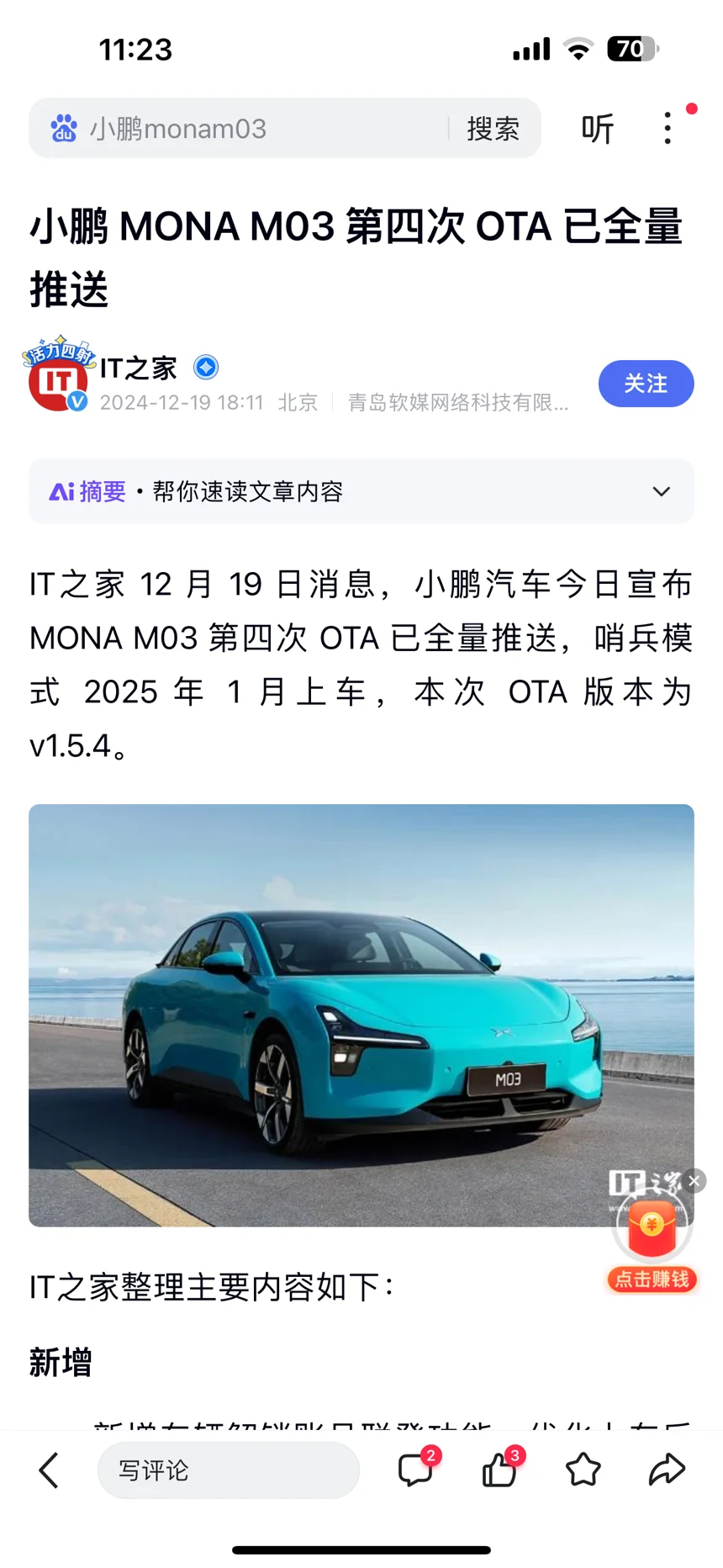 #小鹏汽车 小鹏MONA第四次大规模OTA升级,可以看作是小鹏汽车在智能化、安全性和用户体验方面不断进步的体现。对于车主来说,这无疑是一个积极的信号,意味着他们将能够享受到更加先进、更加安全、更加便捷的用车体验。而对于整个汽车行业来说,这样的升级也是推动行业发展的强大动力。