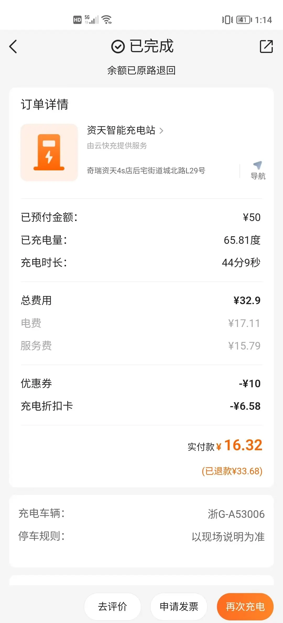 中午出去冲个电,挺优惠的,去和回都用NGP,回来的施工分叉口判断失误,自动到前面调了个头,顺利到达目的地。