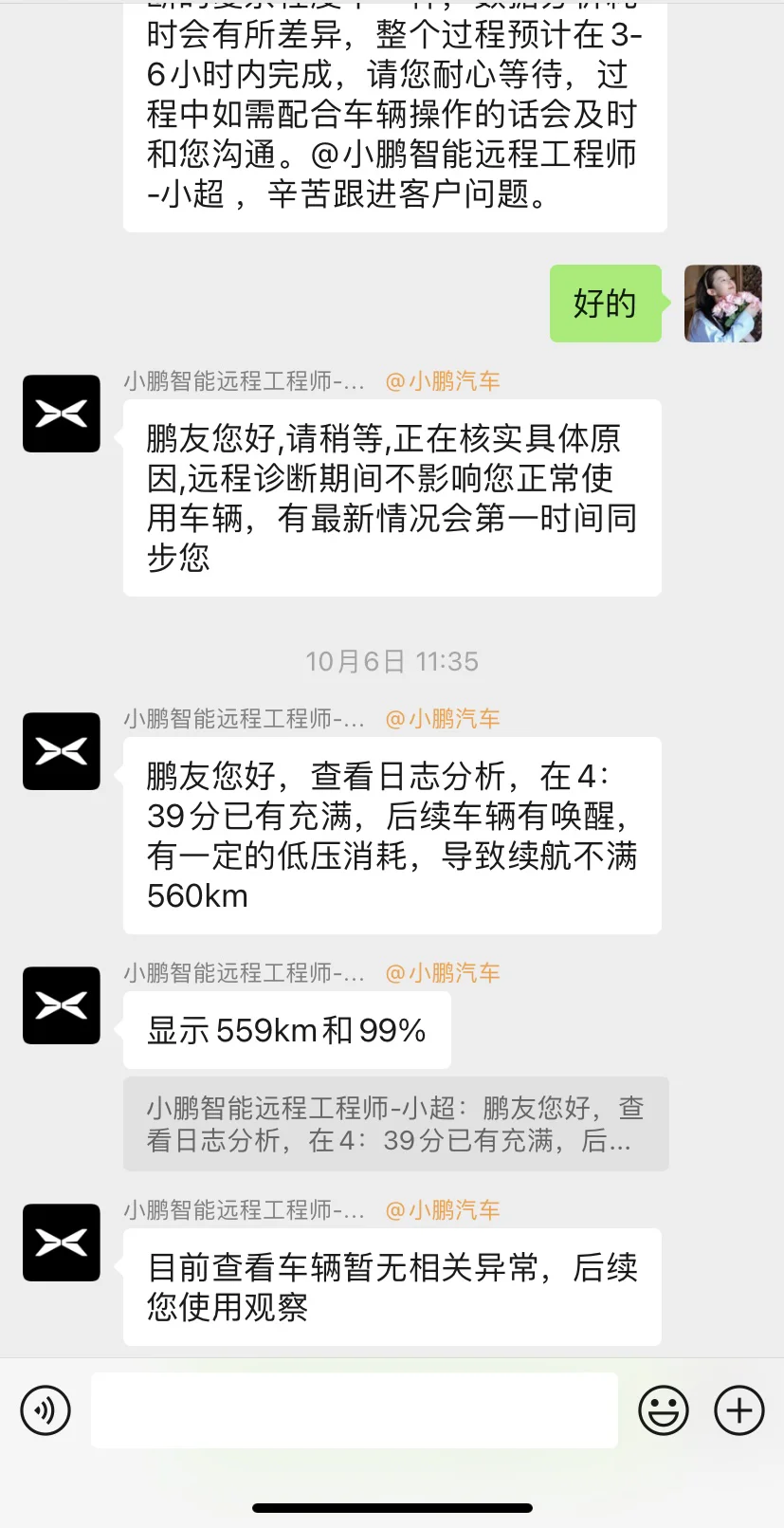 小鹏是把“售后在身边”做的最到位的,不仅有鹏管家24小时在线答疑,车辆有任何疑虑或问题,可以工程师远程诊断,很耐心详细,给你提供傻瓜式操作流程,一点点引导你操作。工程师答疑也很到位,不用等太久,有问必答,让车主十分安心👍你不会有车已卖出就断联的感觉,它时刻守护着你!