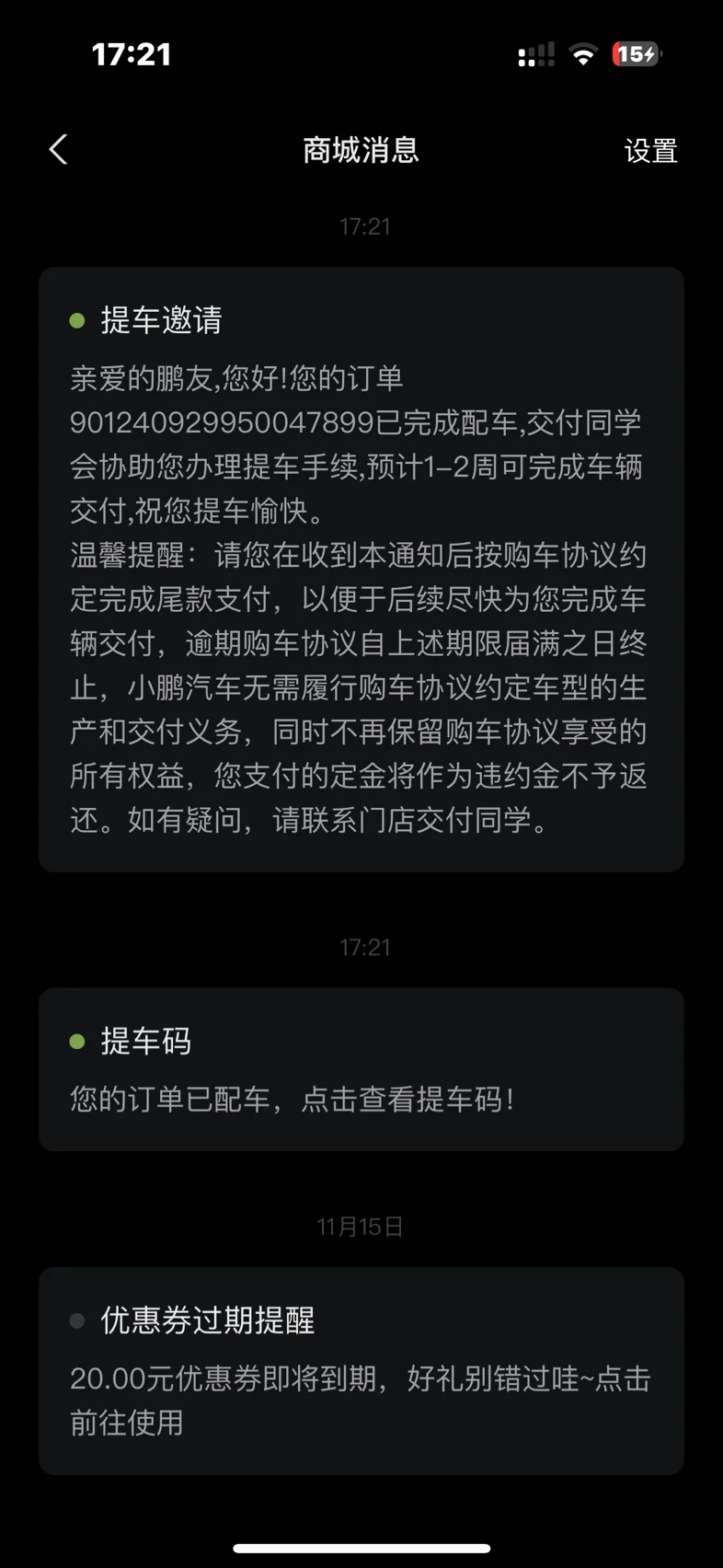 9.29日晚上11点锁单白色浅色内饰18寸轮毂620已配成功上岸