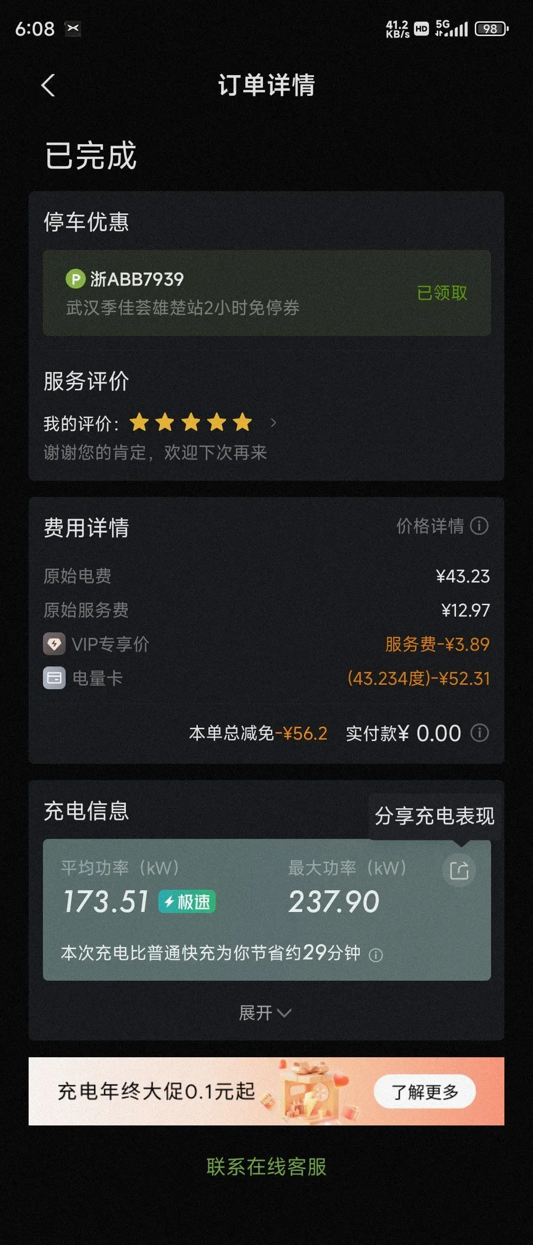 #S5液冷超快充# 去了,去之前想的很好,但实际感觉一般般,没有多高的功率,靠着雄楚大道,车流量大,进出停车场都挺麻烦的,所谓的超快充节省的时间还不够路上堵的!不过整个停车场挺大,楼上有商业,如果去办事吃饭,顺便充个电还是不错的。但今天居然坏了!@充电小助手