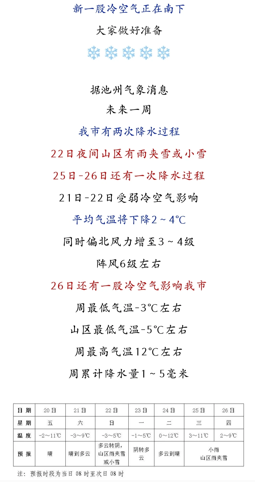 都说电车怕冬天,今天就来给大家实测一下南方冬季续航,下图是我们这边的温度预告图。在这样的条件下,小鹏G6能耗表现到底如何呢?让我们一起来看看。