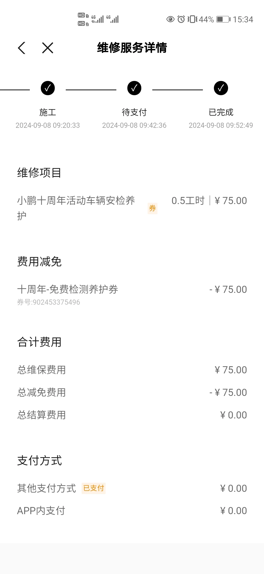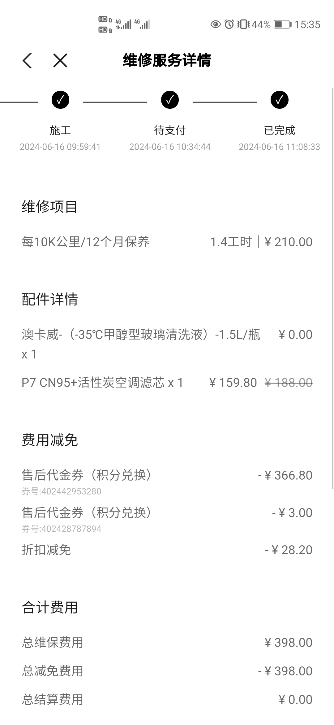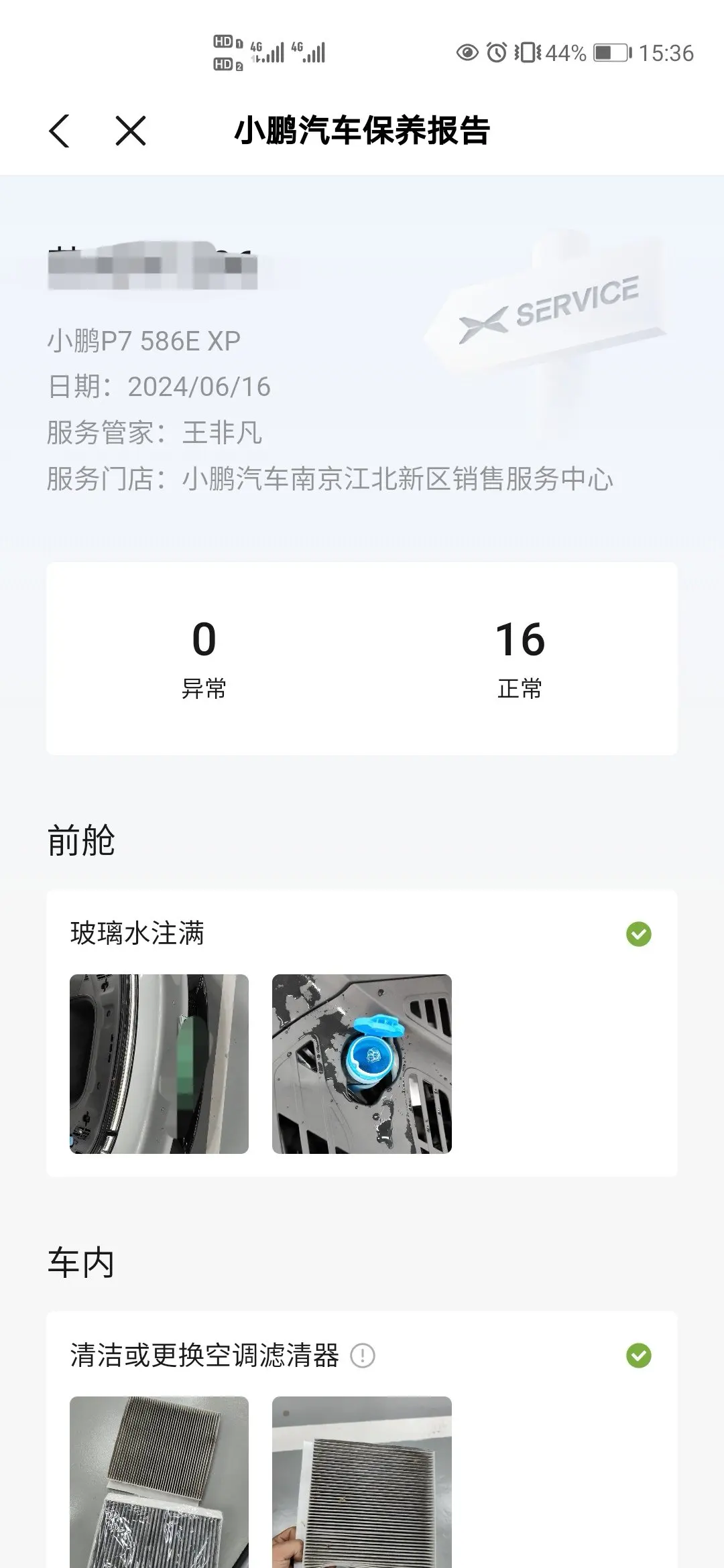 #小鹏汽车 #小鹏服务年度回忆 不知不觉2024年就快结束了,今年在两家不同的小鹏4S店做了售后保养。第一次是在六月做的一万公里保养,在售后人员的耐心指引下,更换了空调滤芯,并做了16项基础检查,经过保养人员细心的检查后所幸全部检查合格正常,可以用积分抵扣保养费用,相当于免费保养了,保养人员最后还送了我两瓶玻璃水,非常贴心。第二次是九月去售后用了小鹏送的十周年免费检测养护券,主要检查了底盘和轮胎,也都正常,保养人员同样给我送了两瓶玻璃水,还提醒我气温降低要及时加胎压以降低电耗。今年两次售后保养服务让我觉得小鹏的售后体验非常好,必须给小鹏点个赞,希望我鹏继续保持,给鹏友们提供更加满意的服务。