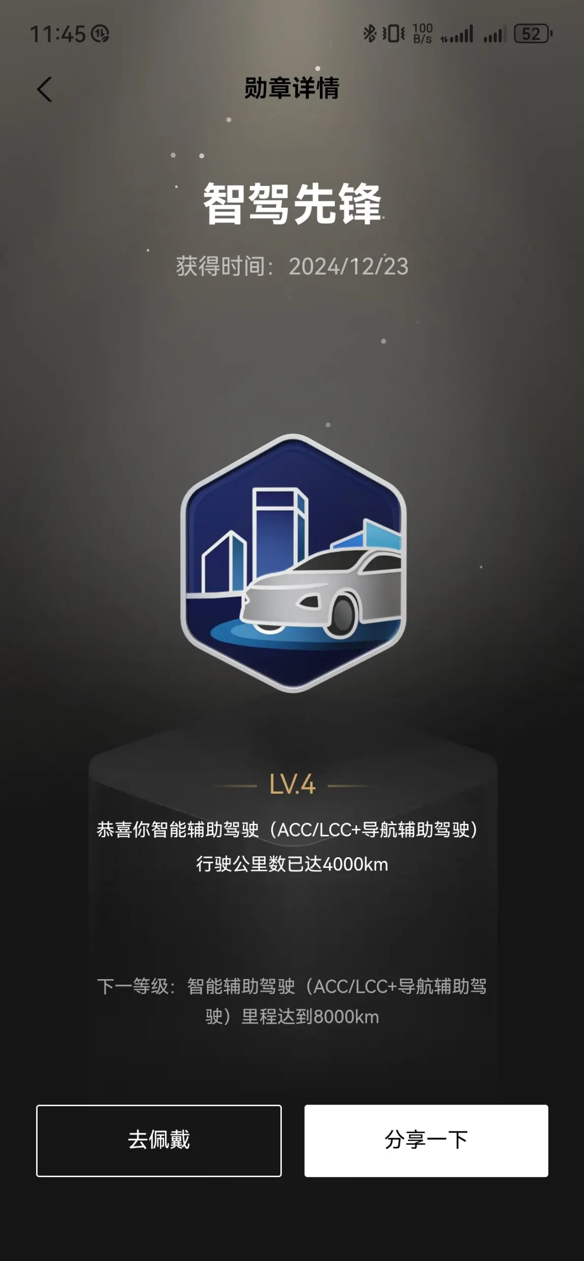 智能辅助驾驶总里程已经超过4000公里,非常赞,希望接下来的ota修复各种bug,让智驾更好用,让旅程更轻松!