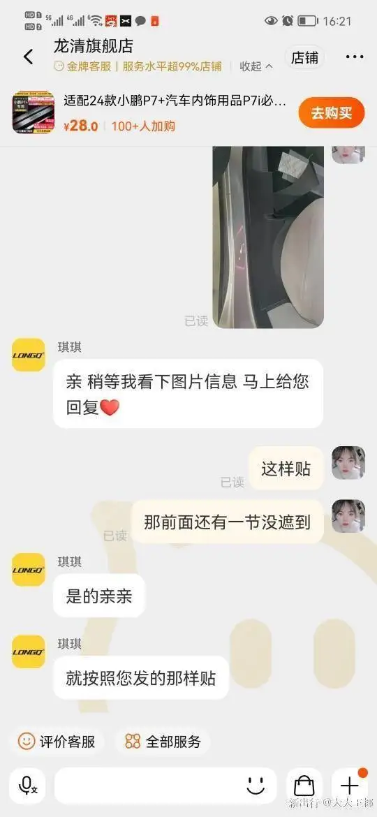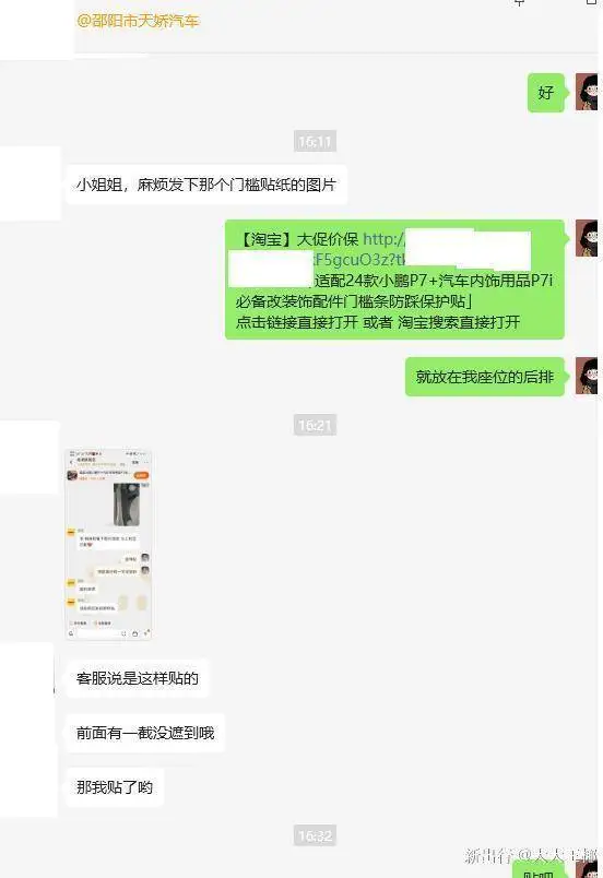 怎么都想不到有一天,我的小鹏售后姐姐这么贴心。这比我的销售弟弟贴心一百倍啊。她不然答应帮我贴门槛垫,还直接问我要了商品的详情。我把商品链接给她以为她就看看图就动手。结果,她居然去淘宝上跟人家细聊??????这么细心?????????何小鹏总,可以给你的员工加加工资吗?啥样的薪资才配得上这么细致周全的服务啊??今天被感动到了。她是真的好像可以跟车主共情了,她说她心疼新车被刮?售后人员不是天天维修吗,能共情了。好人啊。把我眼泪勾引出来了!