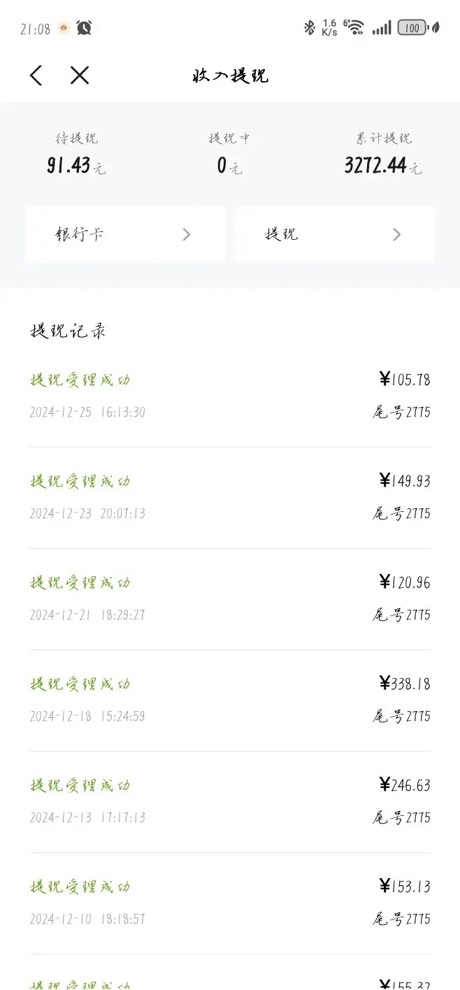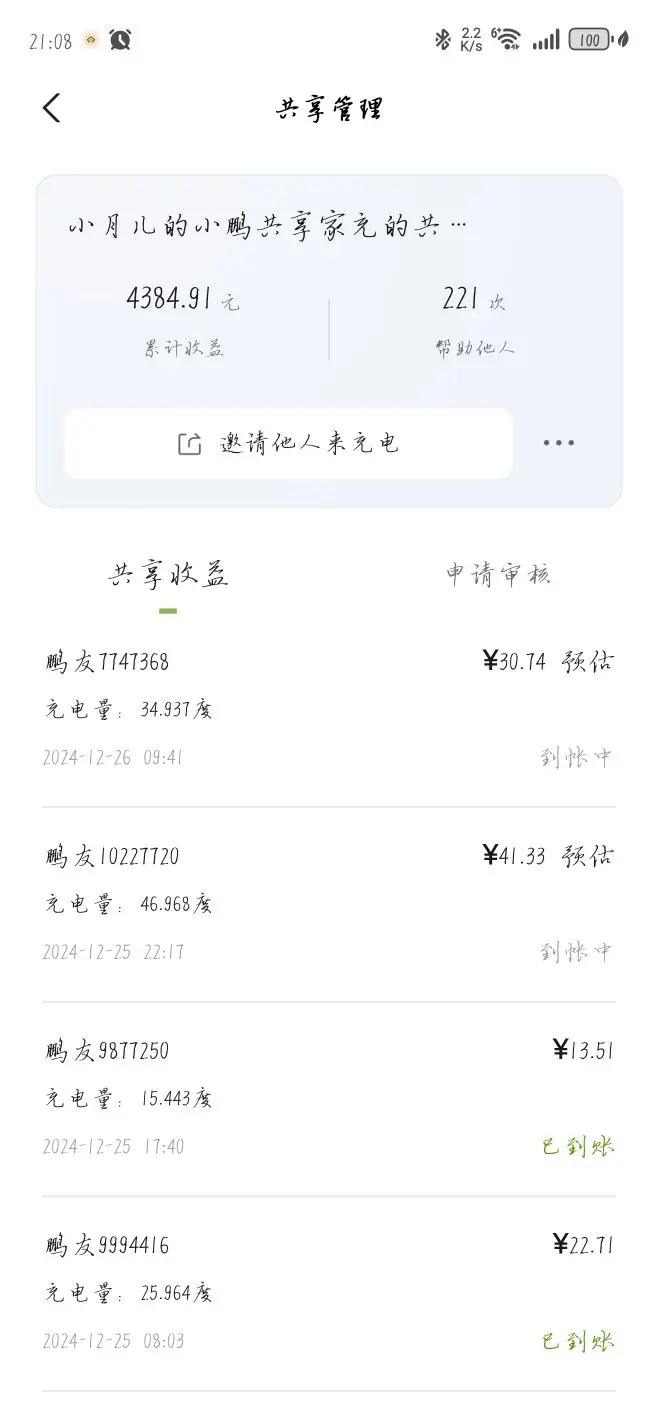 先晒晒我的充电桩提现金额吧,每隔两天就会收入100+,朝朝暮暮的默默赚钱