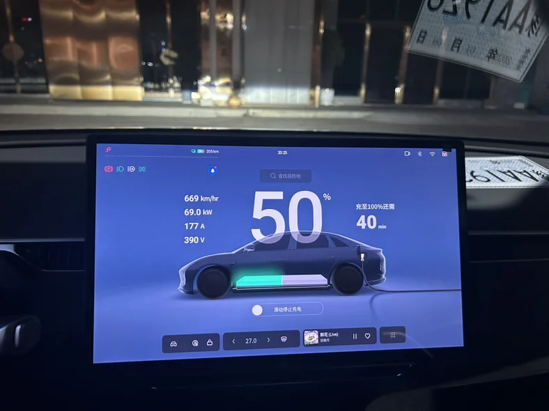 充电速度:峰值功率可以够到100kw(特来电快充桩),40分钟充满,相对车价来说值得好评。