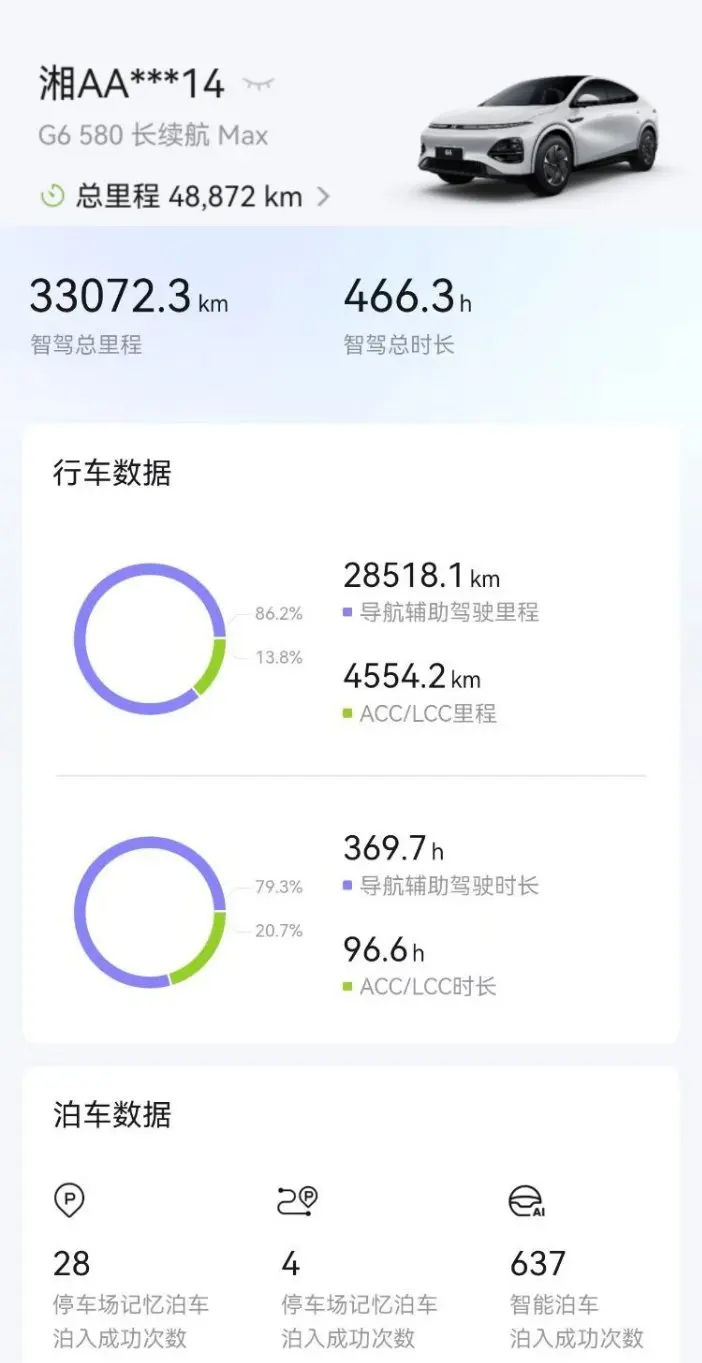 一年总行程48872KM,智驾里程33072KM,买小鹏汽车是真送个“司机”!
